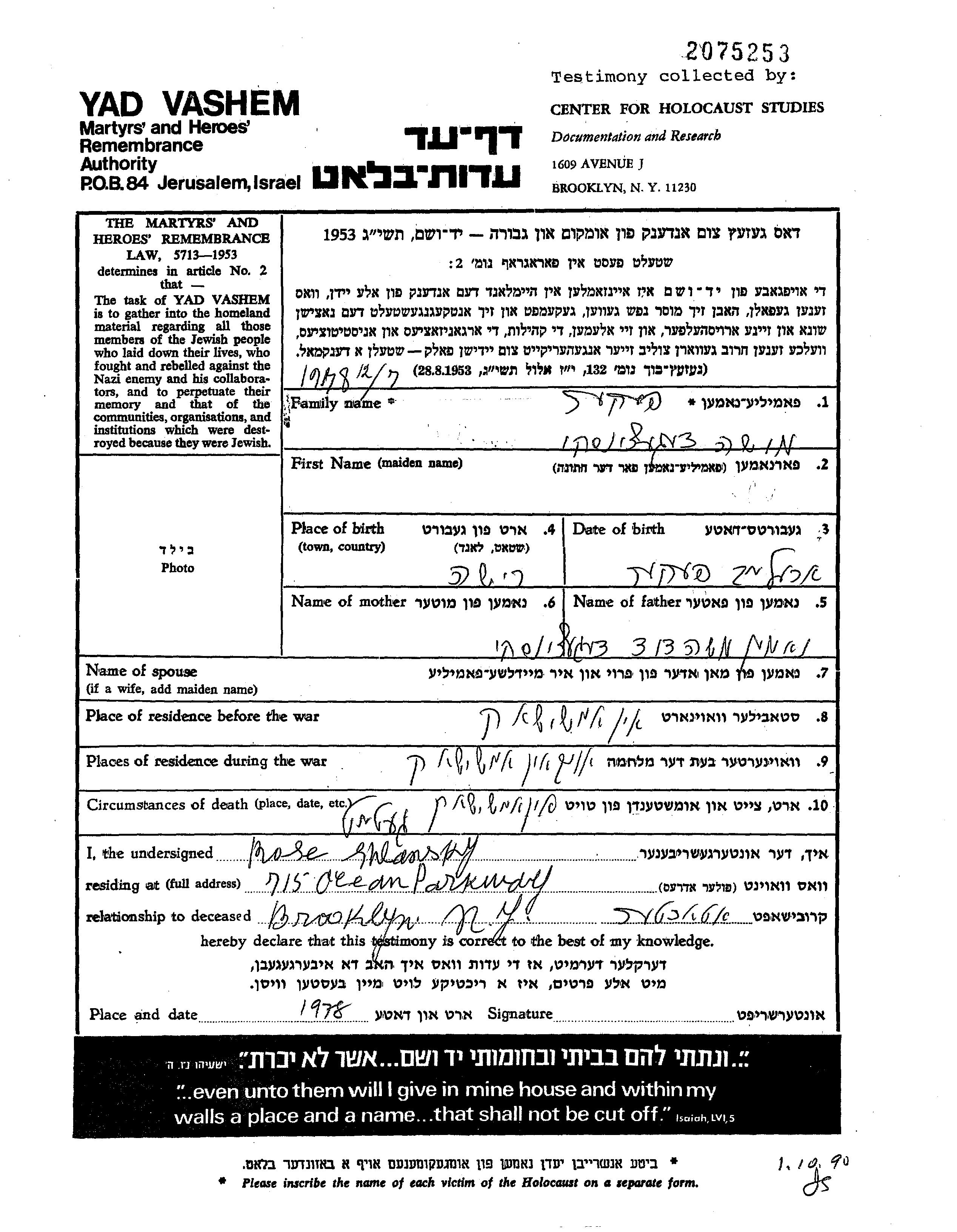 Yad Vashem - Pages of Testimony Names Memorial Collection