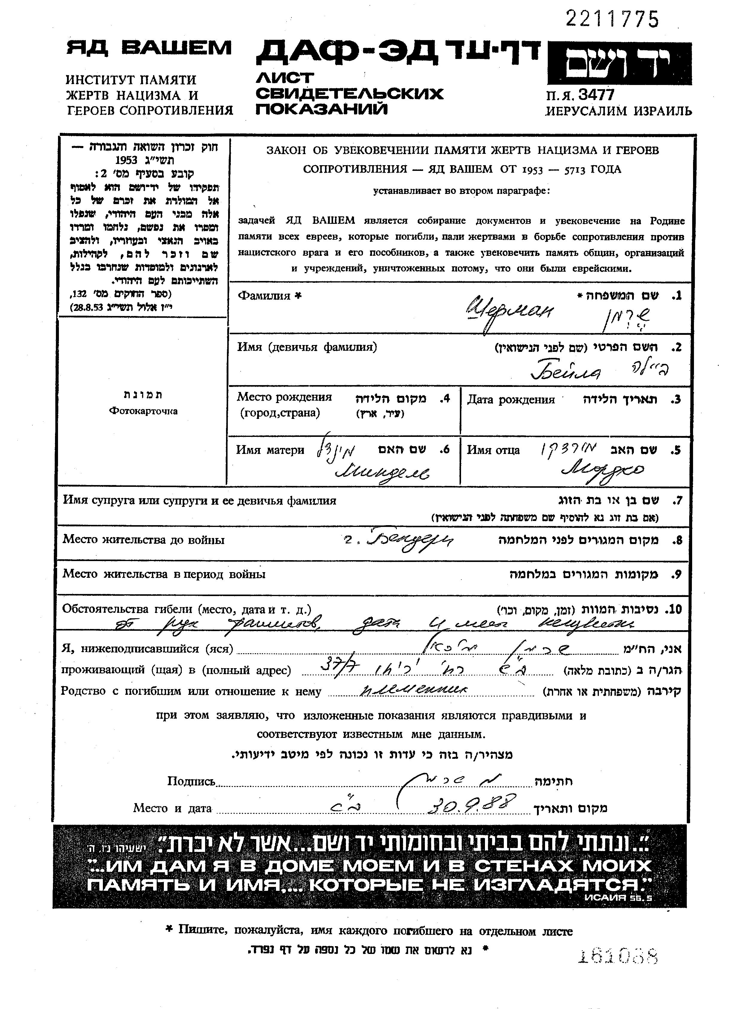 Yad Vashem - Pages of Testimony Names Memorial Collection