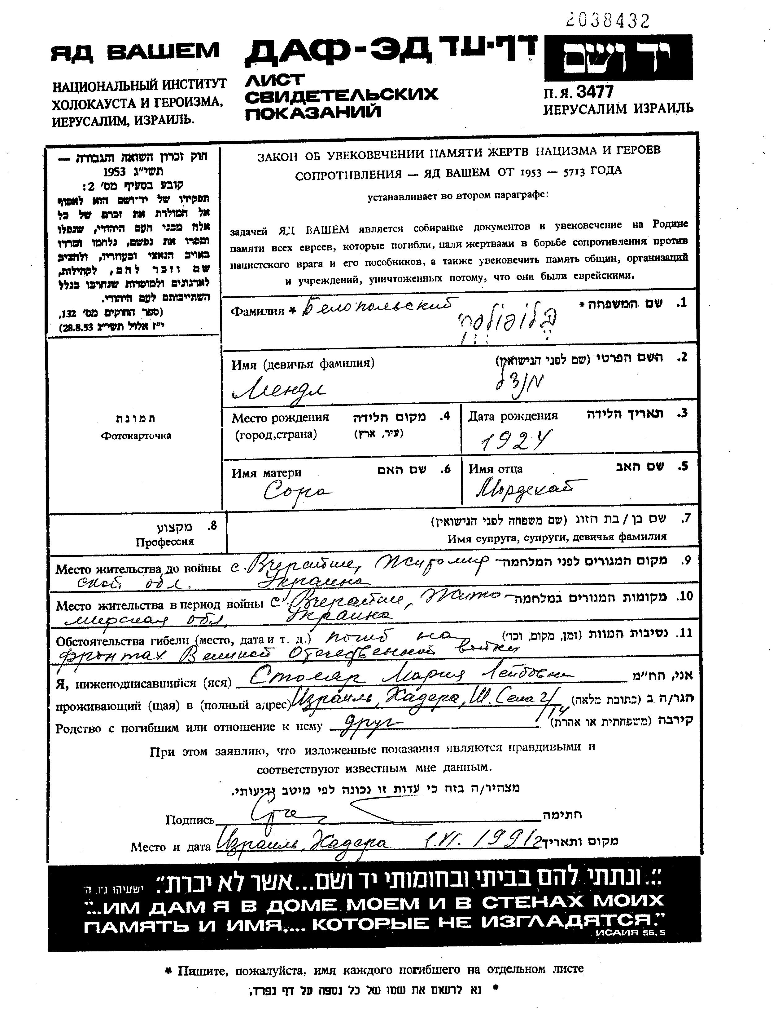 Recherche par nom du dépositeur de la Feuille de témoignage. Cette recherché indique aussi les noms de jeunes filles.