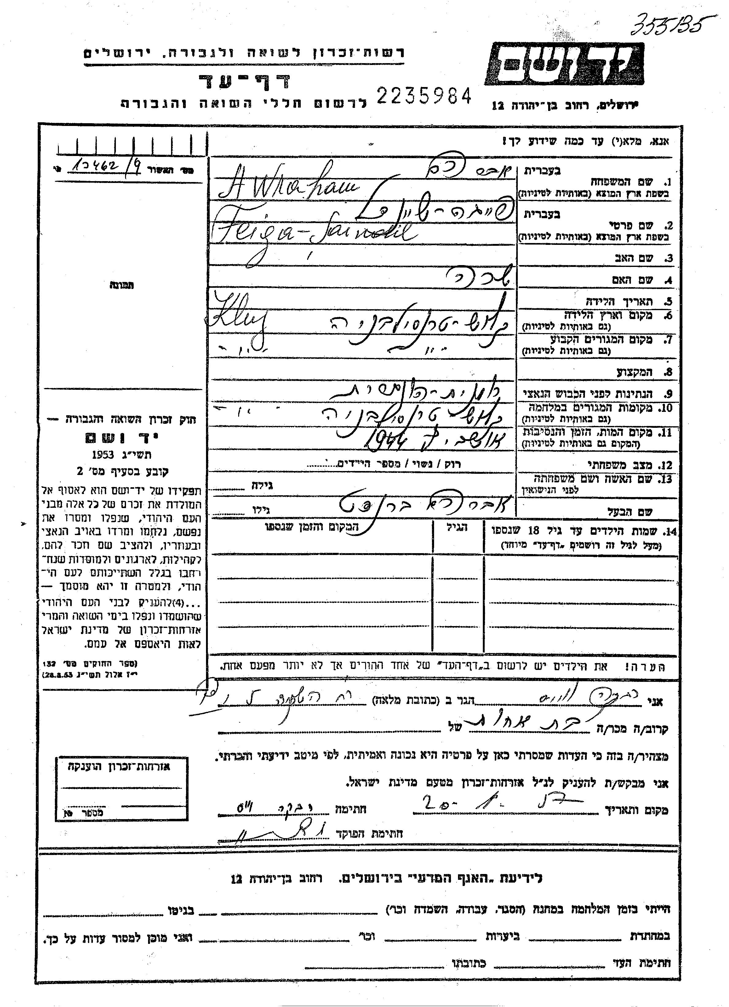 Yad Vashem - Pages of Testimony Names Memorial Collection