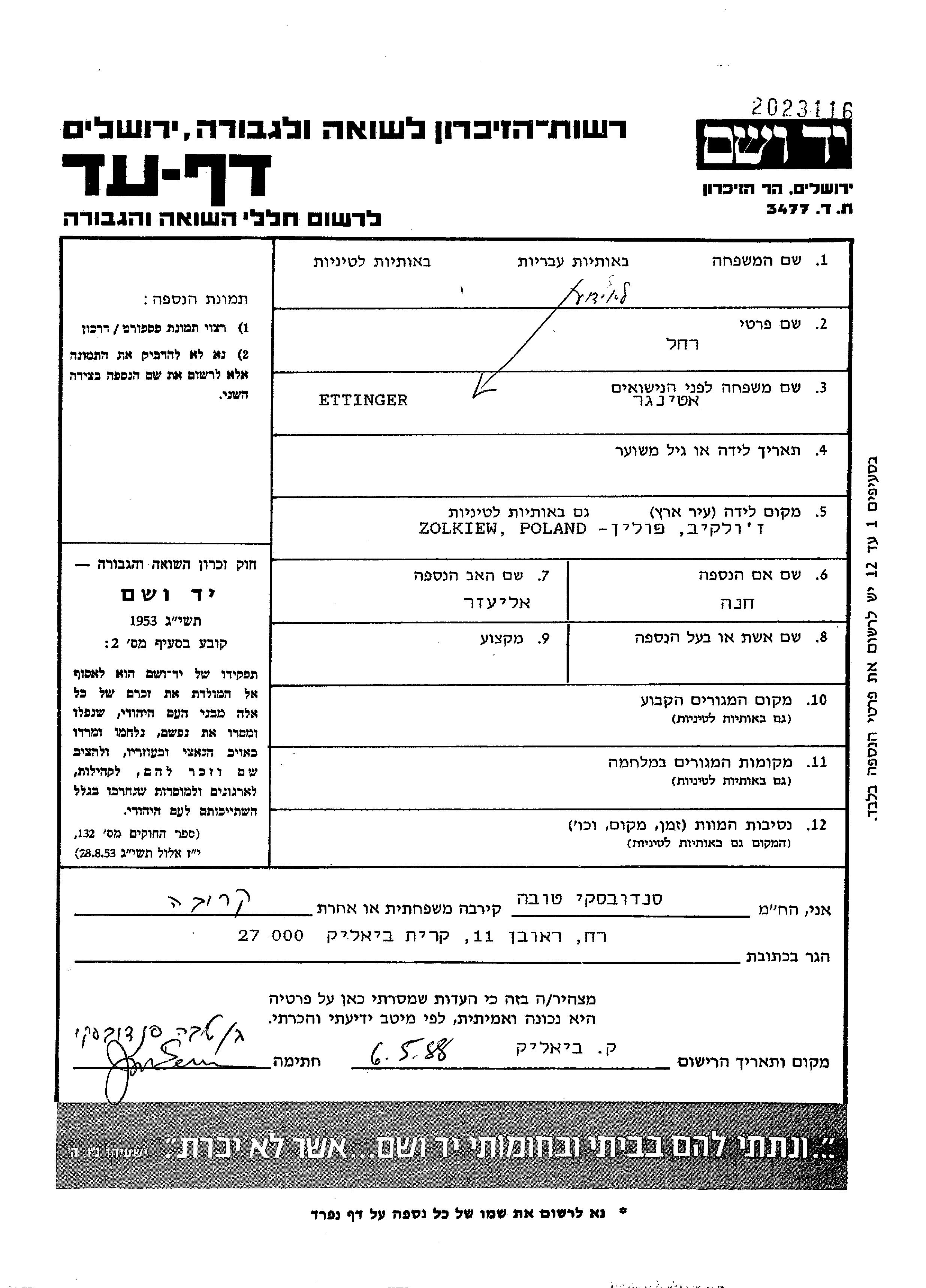 Yad Vashem - Pages of Testimony Names Memorial Collection