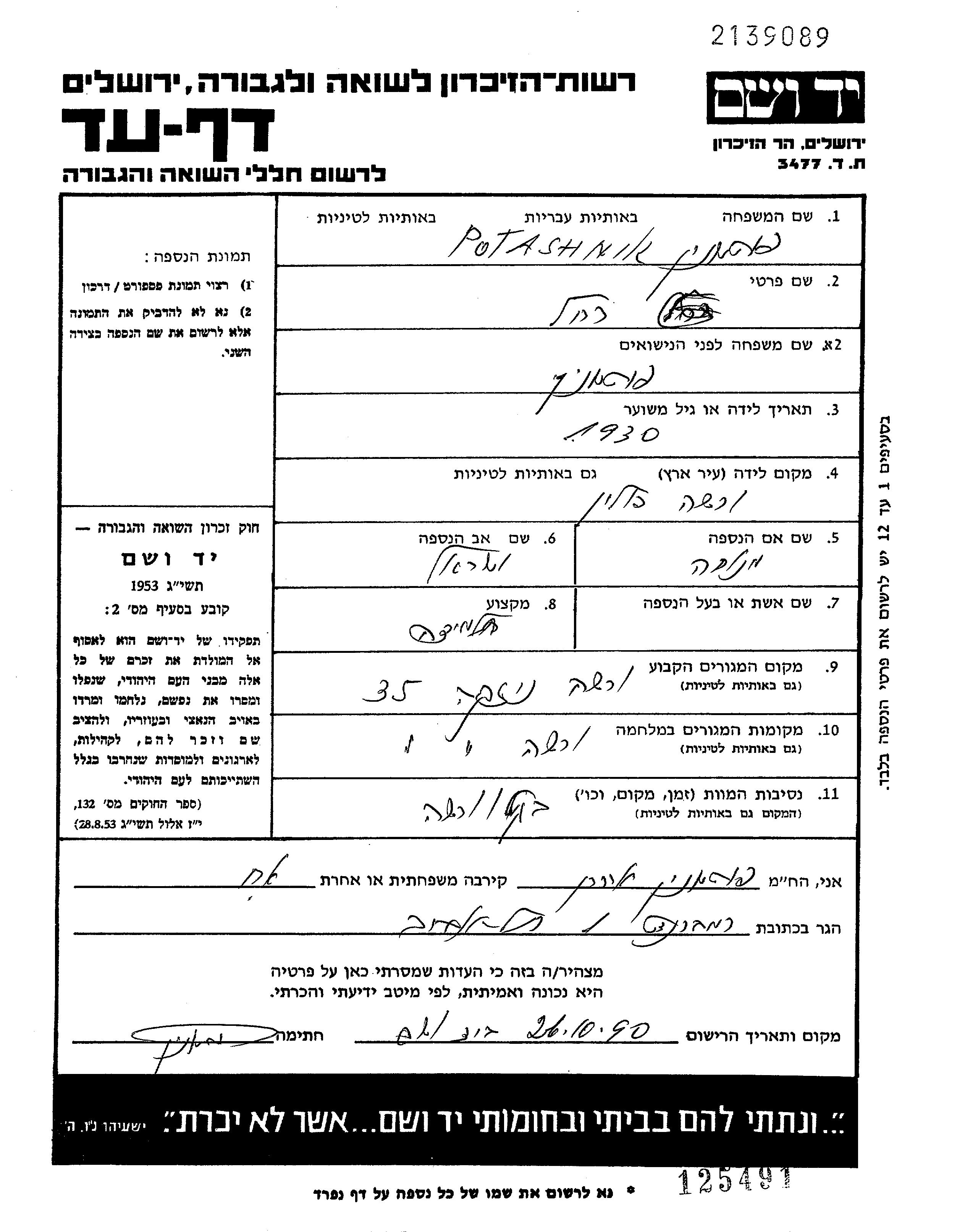 Yad Vashem - Pages of Testimony Names Memorial Collection