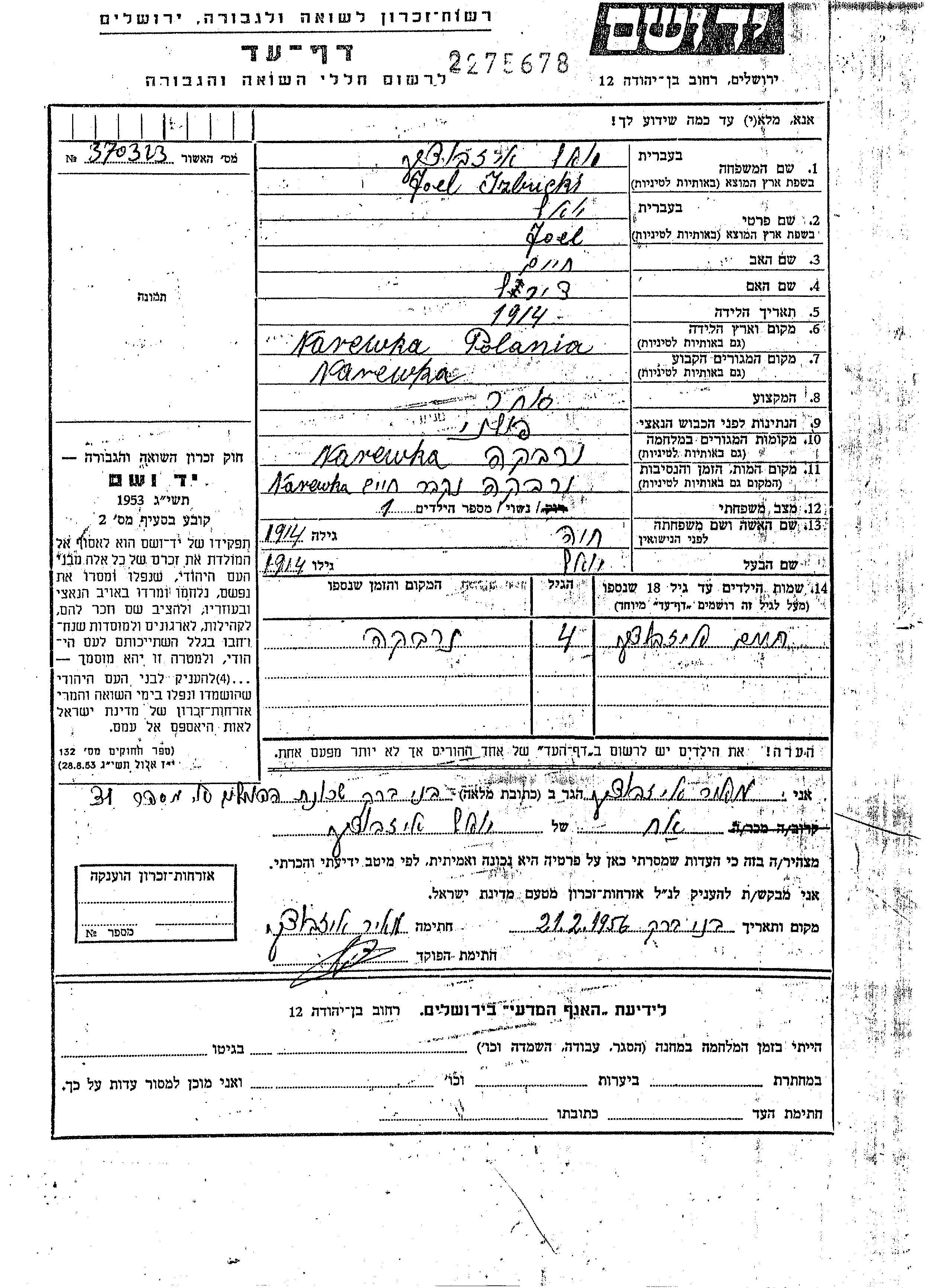 Yad Vashem - Pages of Testimony Names Memorial Collection