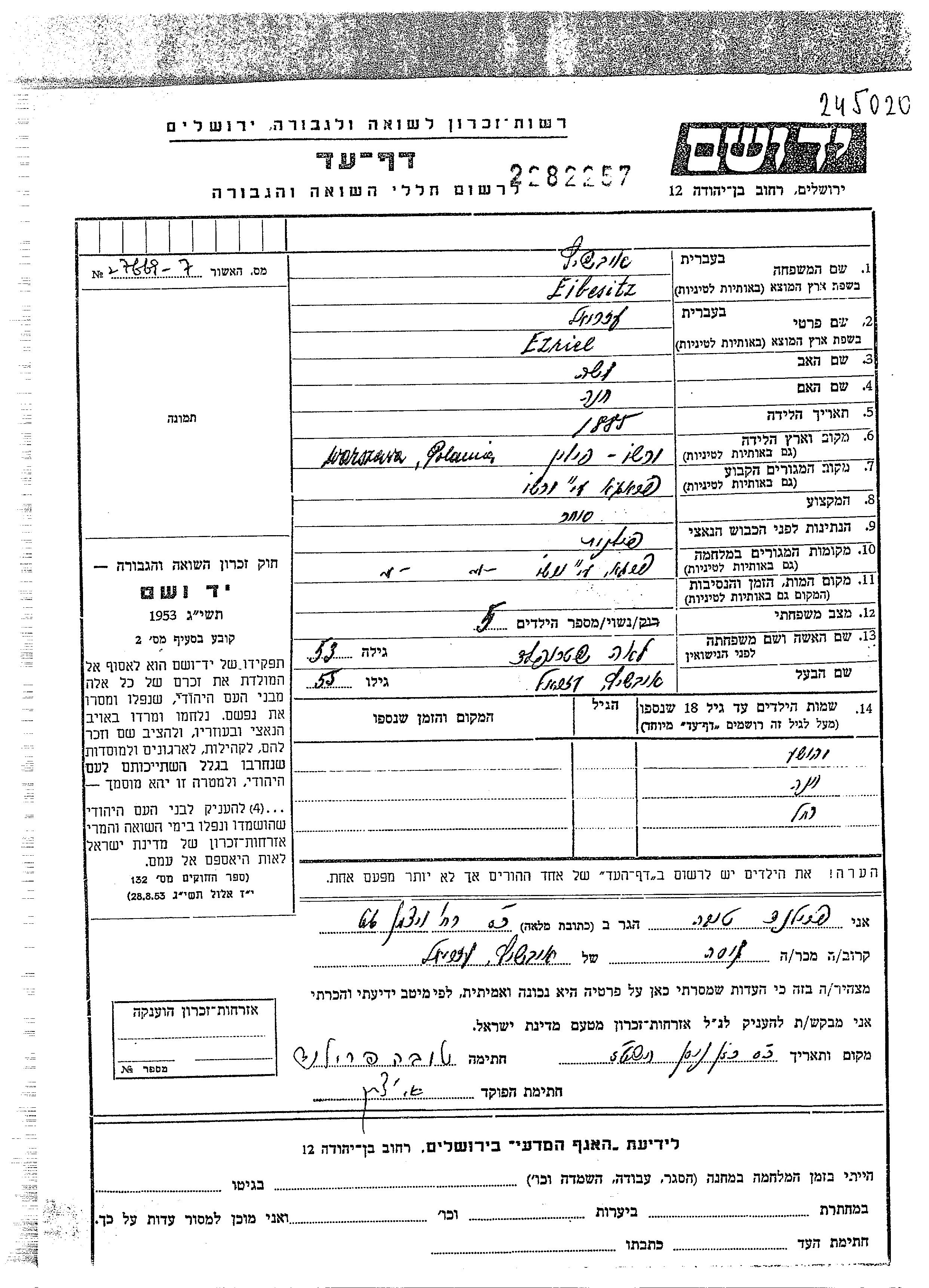 Yad Vashem - Pages of Testimony Names Memorial Collection