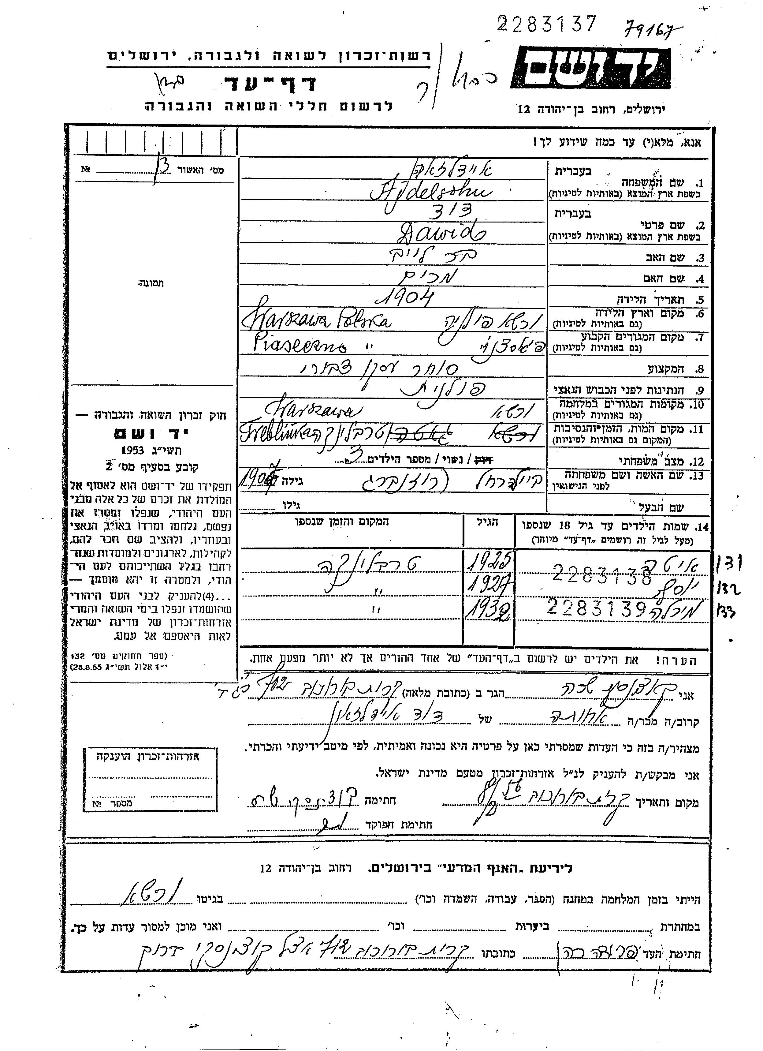 Yad Vashem - Pages of Testimony Names Memorial Collection