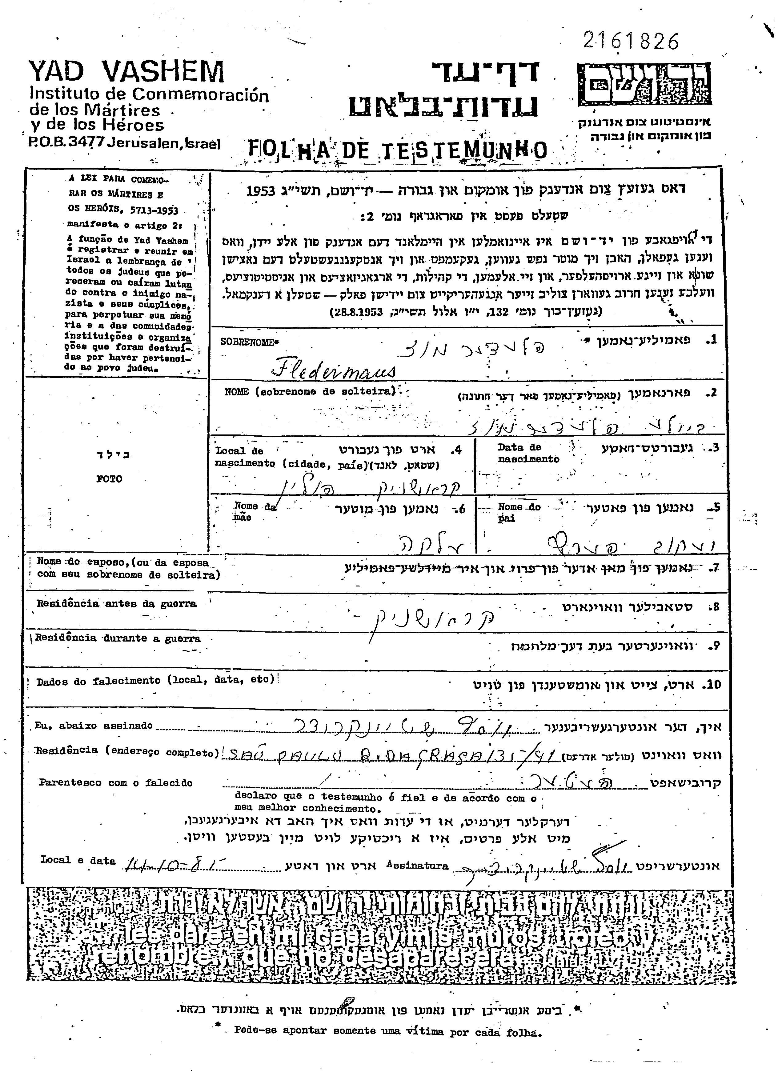 Yad Vashem - Pages of Testimony Names Memorial Collection