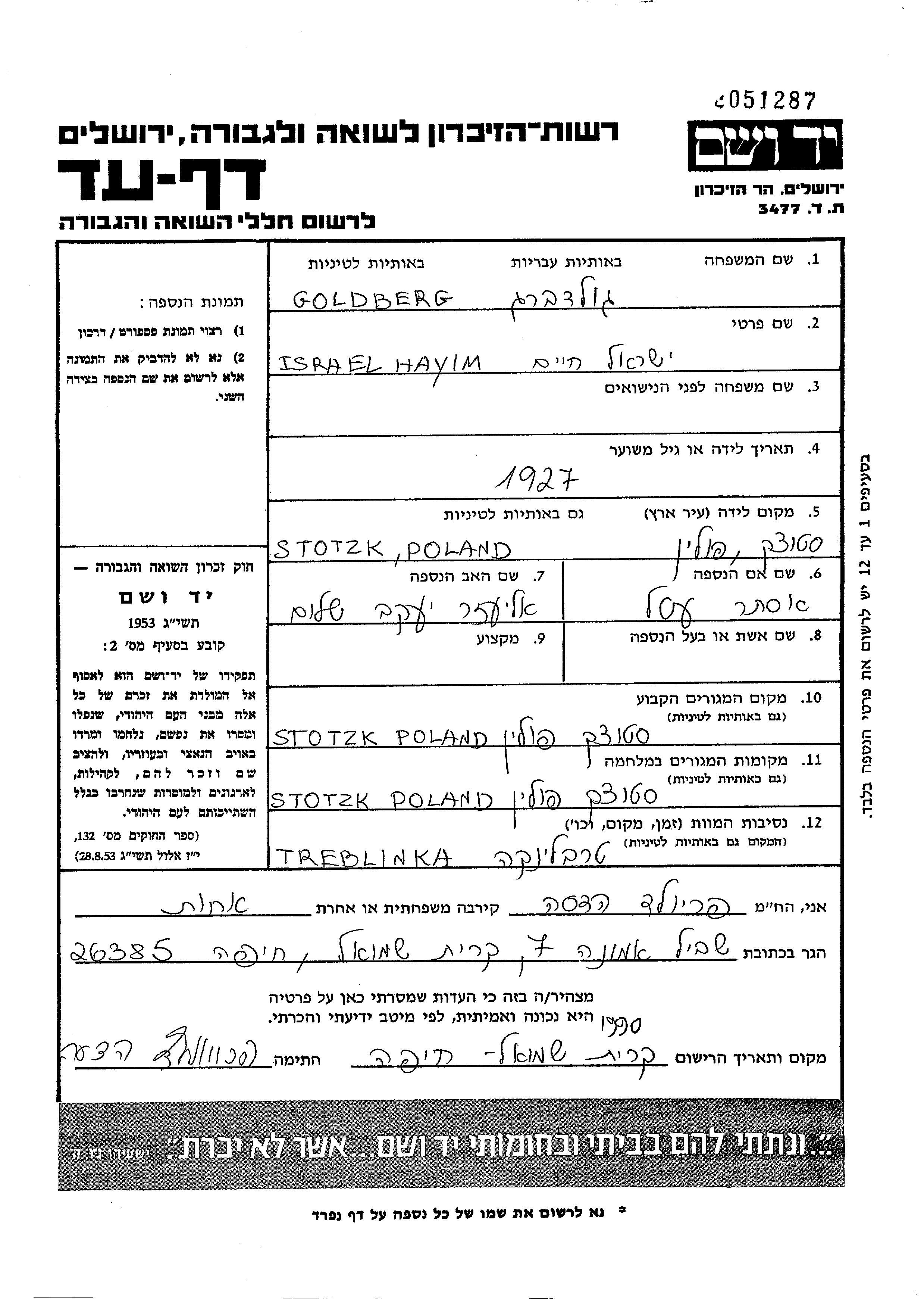 Israel Hayim a été assassiné pendant la Shoah. Lieu de la mort: Treblinka, Pologne.
