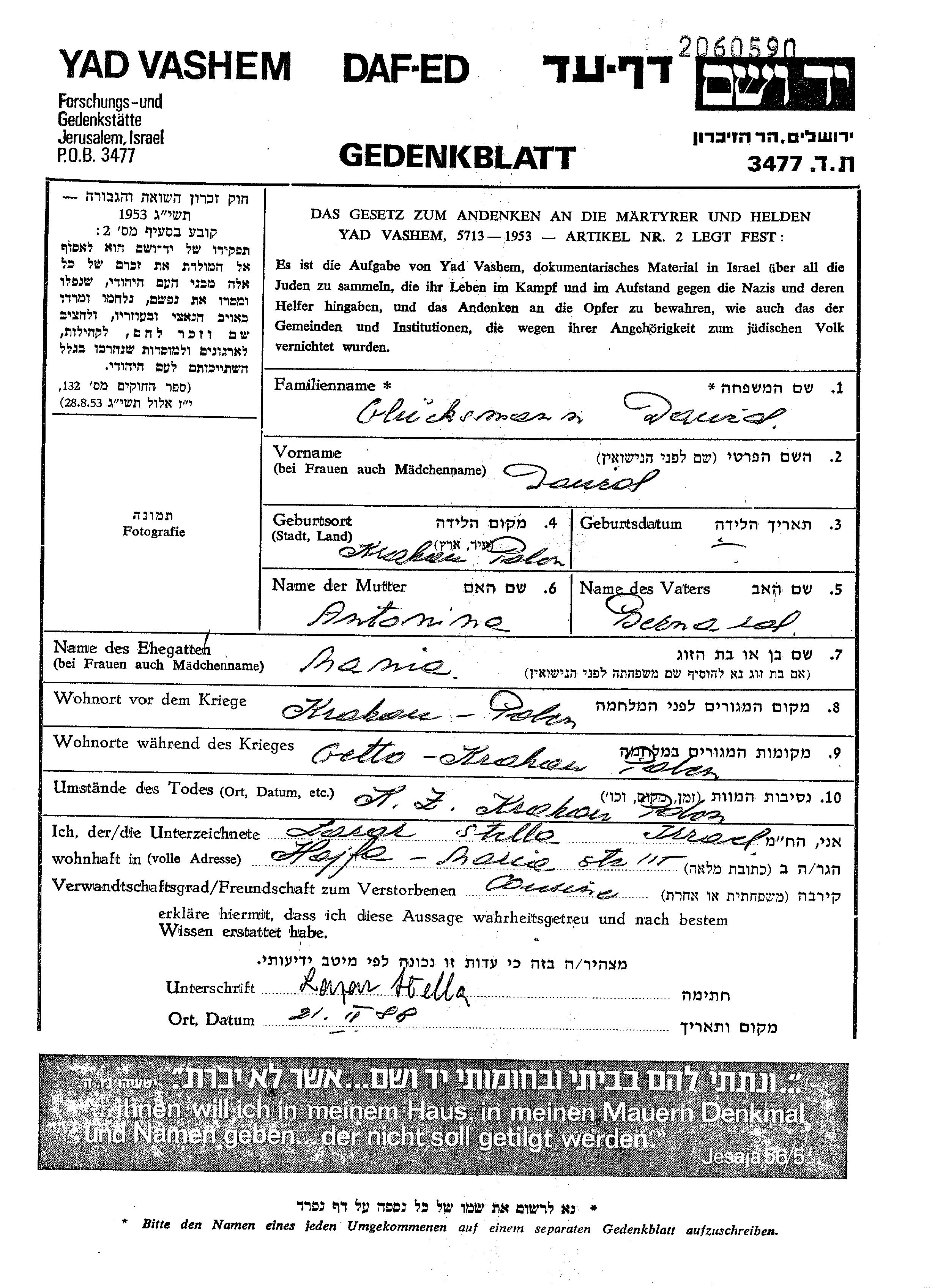 Yad Vashem - Pages of Testimony Names Memorial Collection