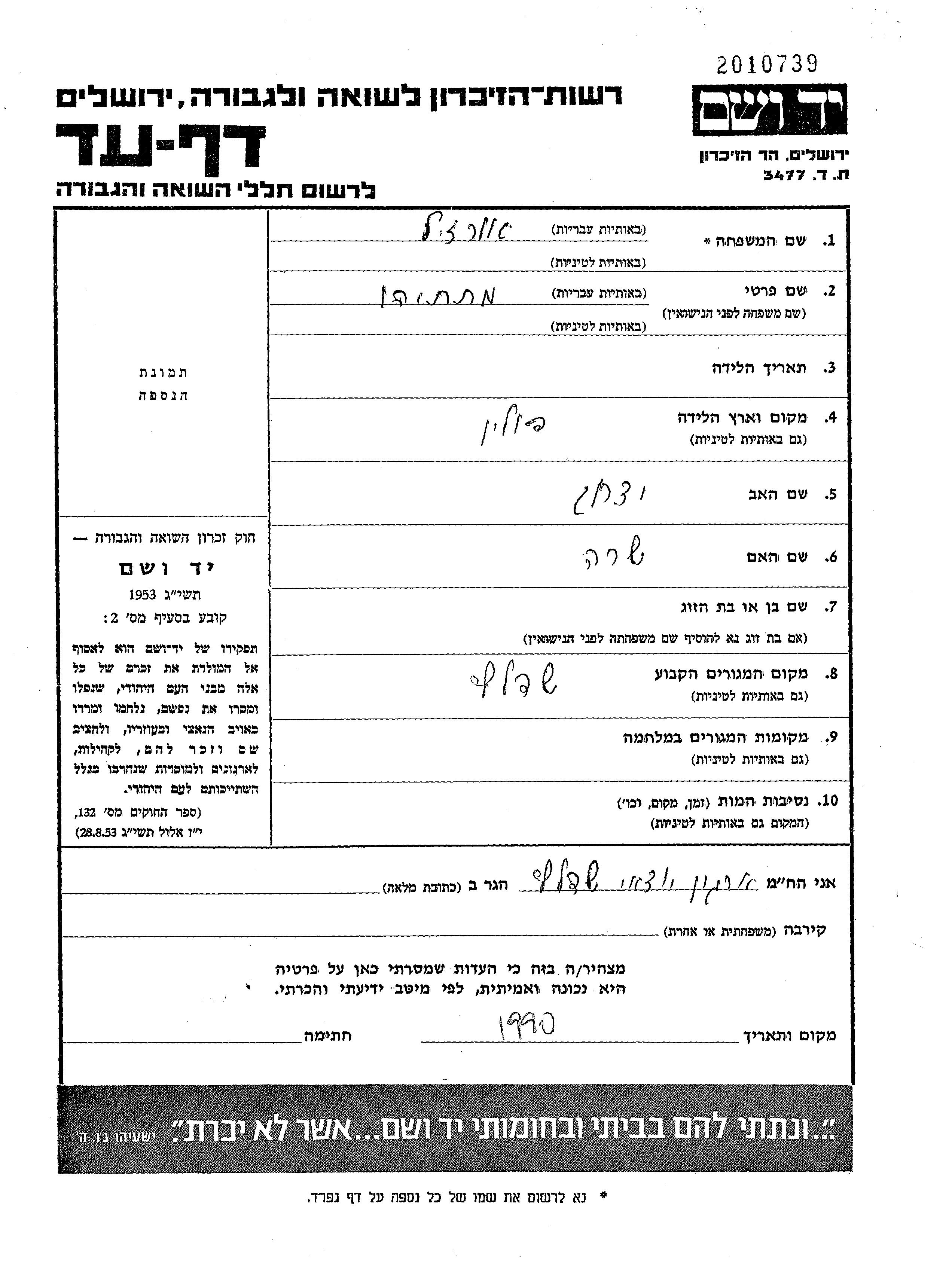 Yad Vashem - Pages of Testimony Names Memorial Collection
