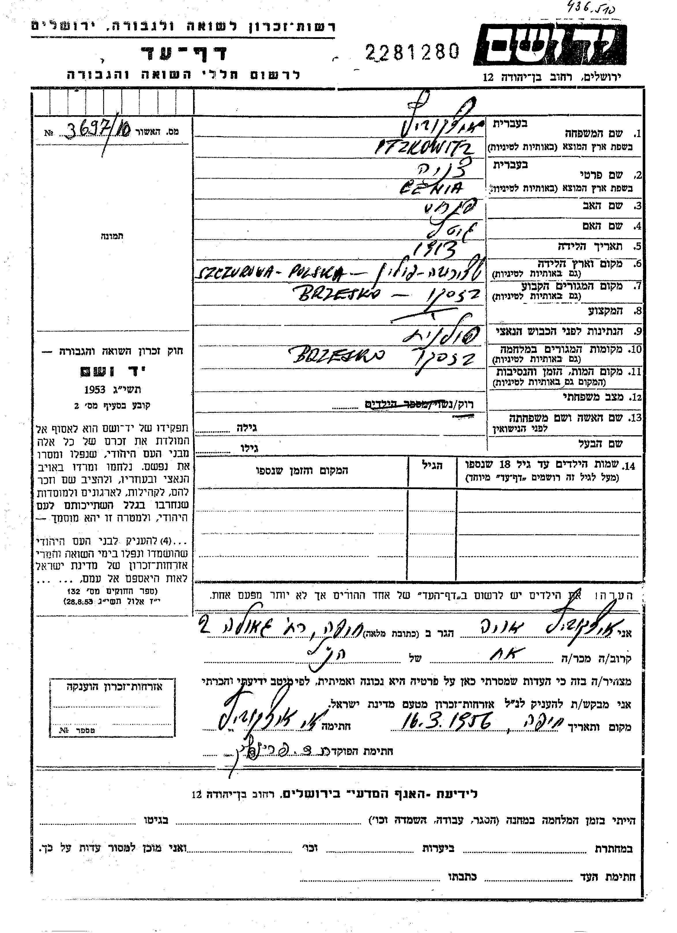 Yad Vashem - Pages of Testimony Names Memorial Collection
