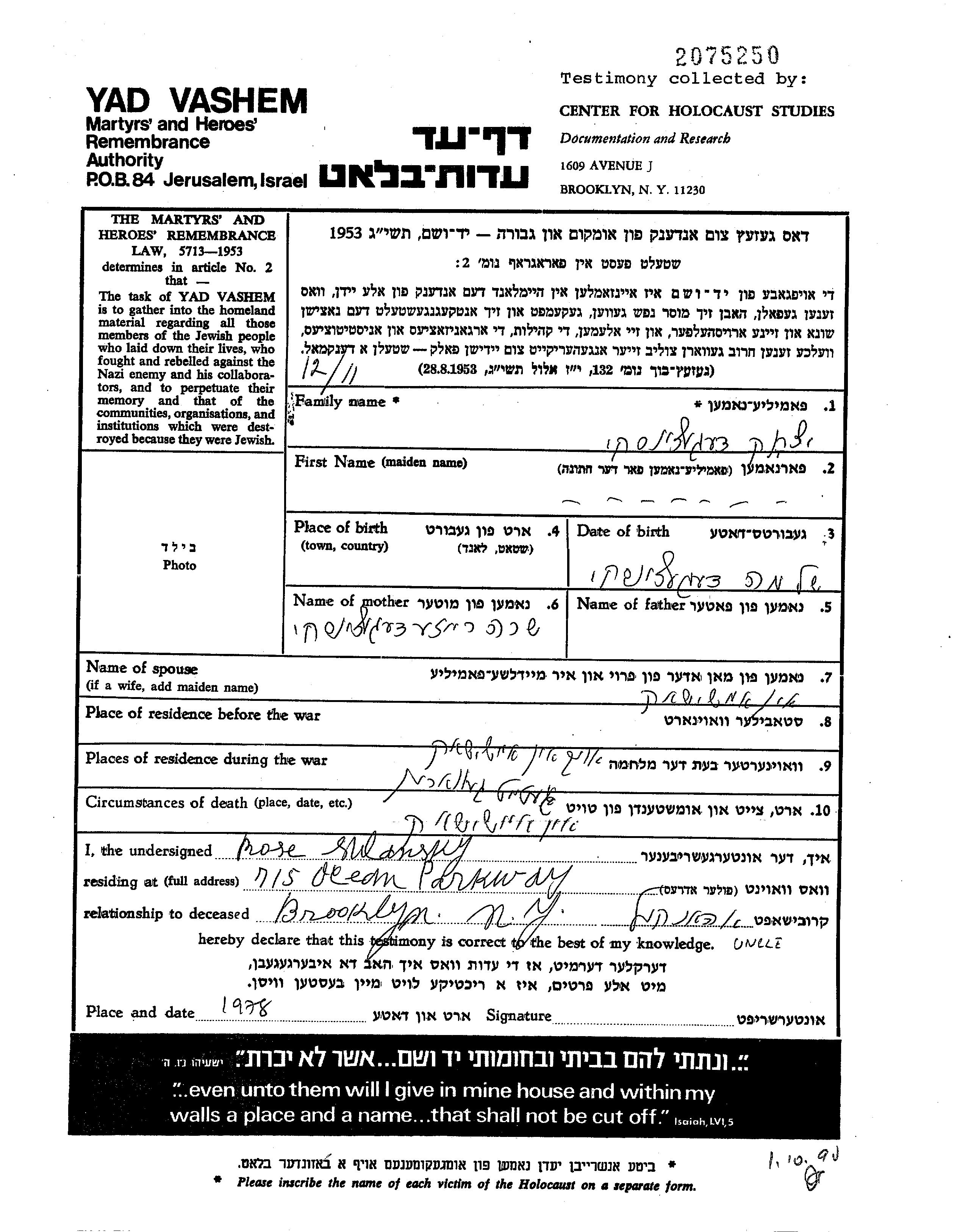 Yad Vashem - Pages of Testimony Names Memorial Collection