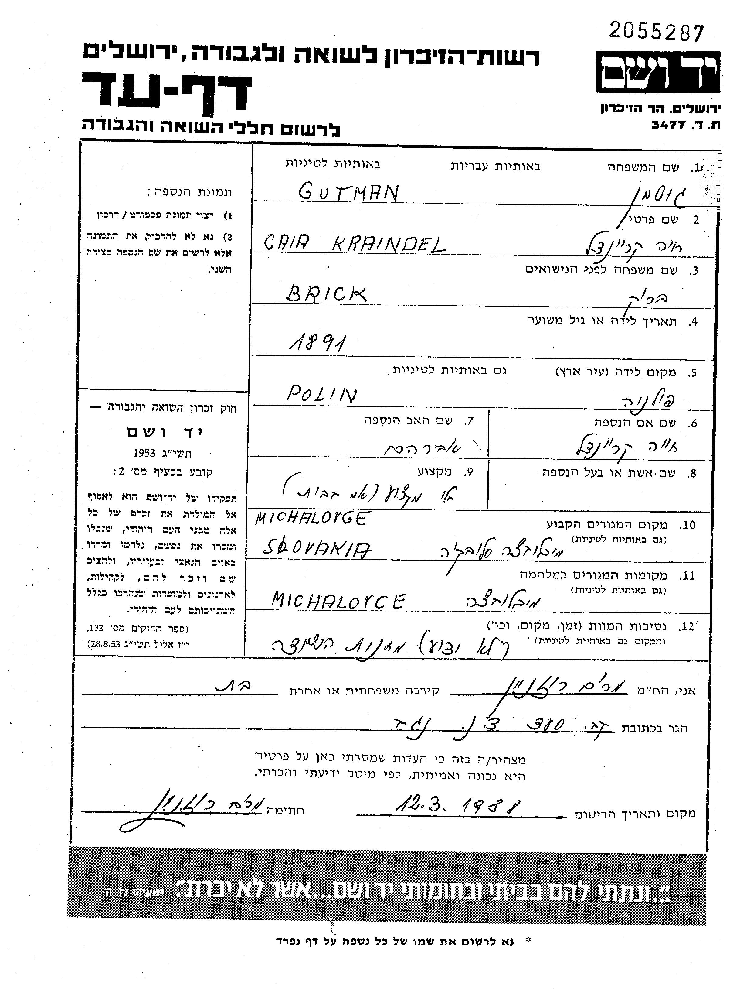 Recherche par nom du dépositeur de la Feuille de témoignage. Cette recherché indique aussi les noms de jeunes filles.