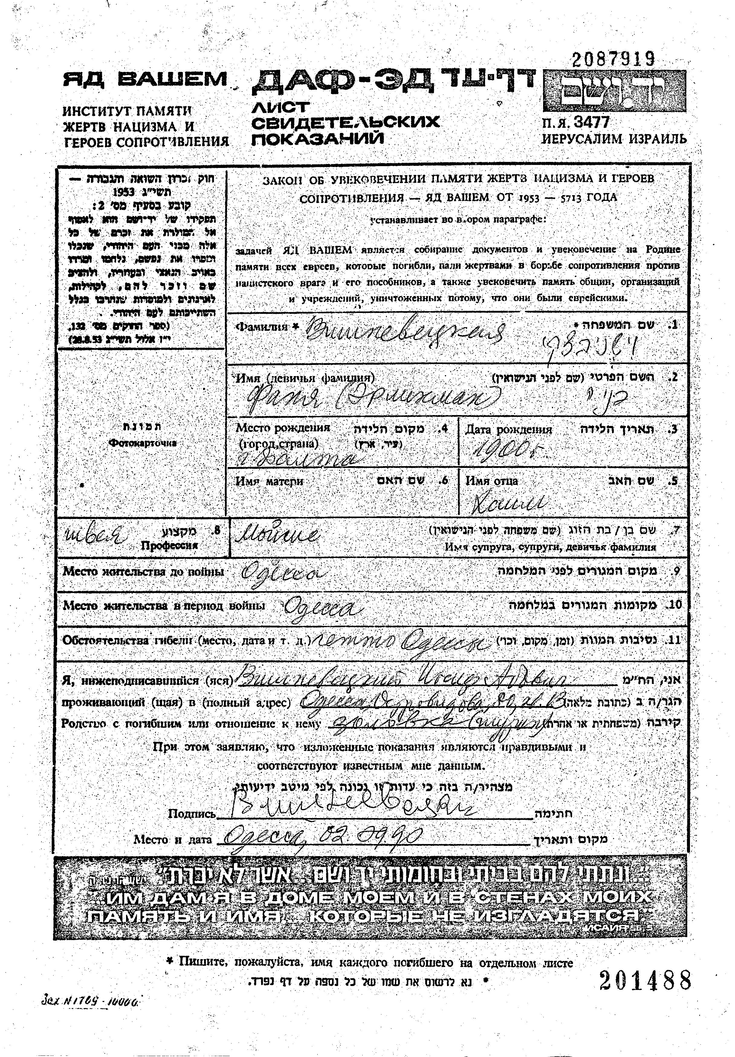 Yad Vashem - Pages of Testimony Names Memorial Collection