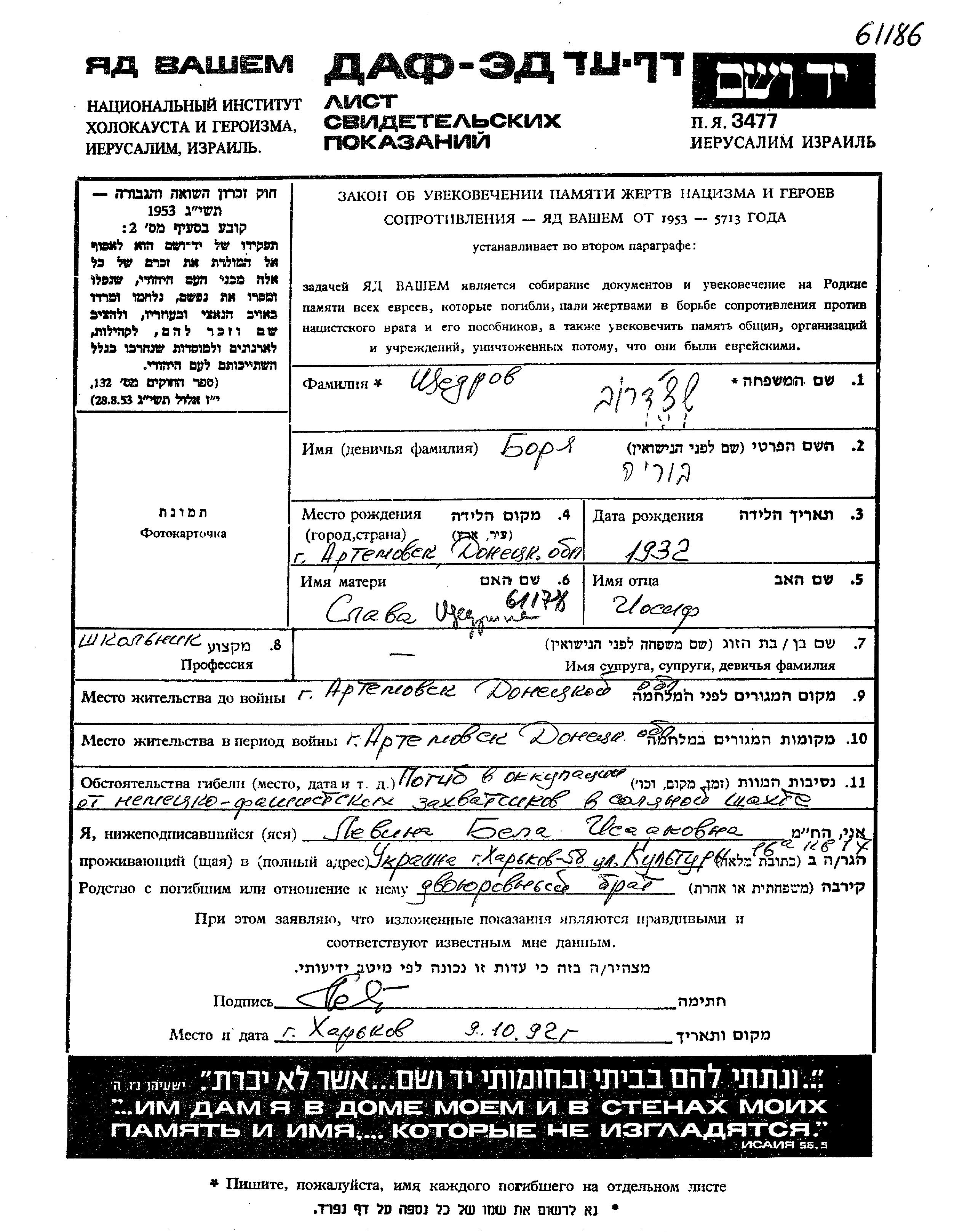 Yad Vashem - Pages of Testimony Names Memorial Collection