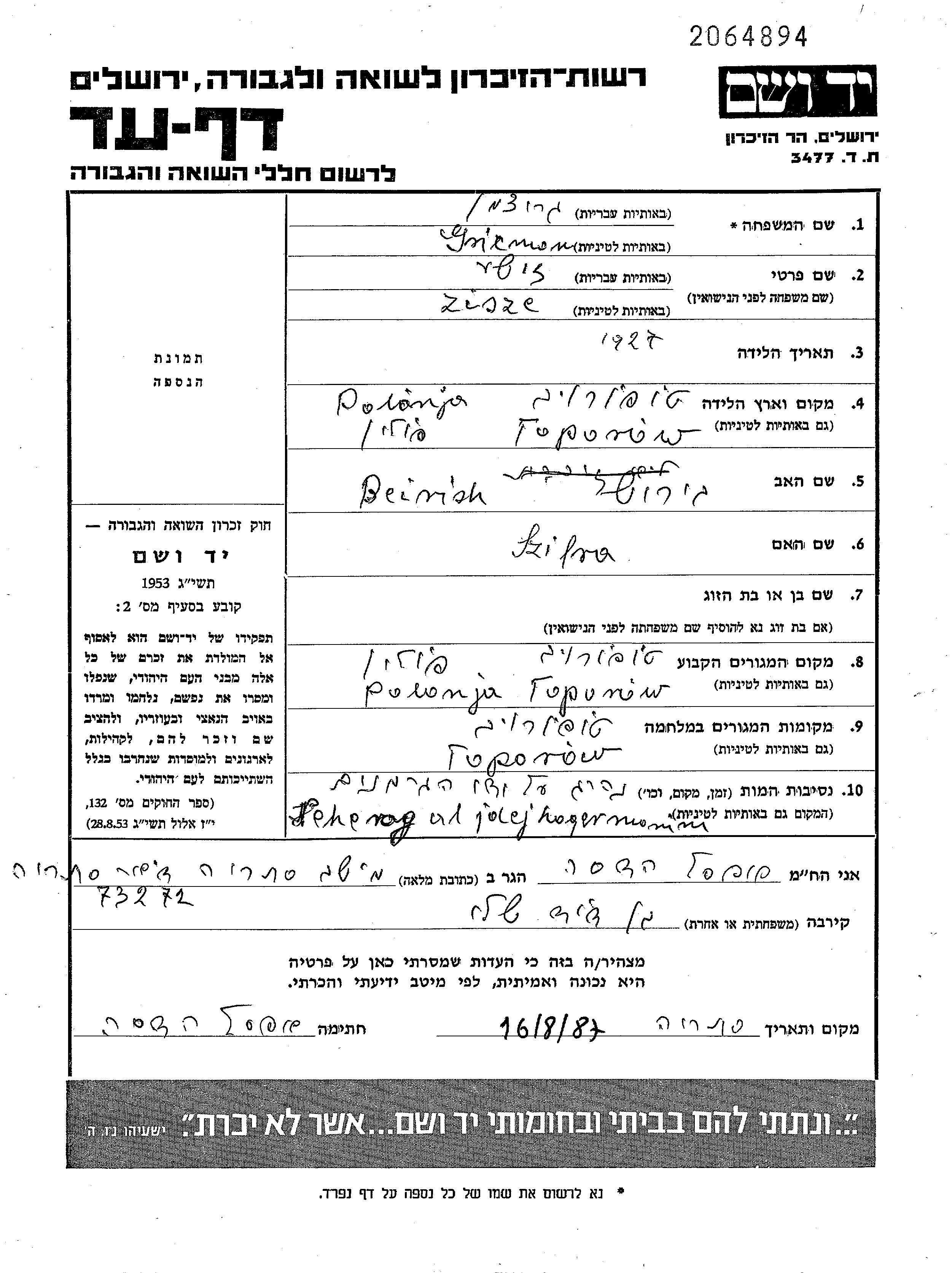 Yad Vashem - Pages of Testimony Names Memorial Collection