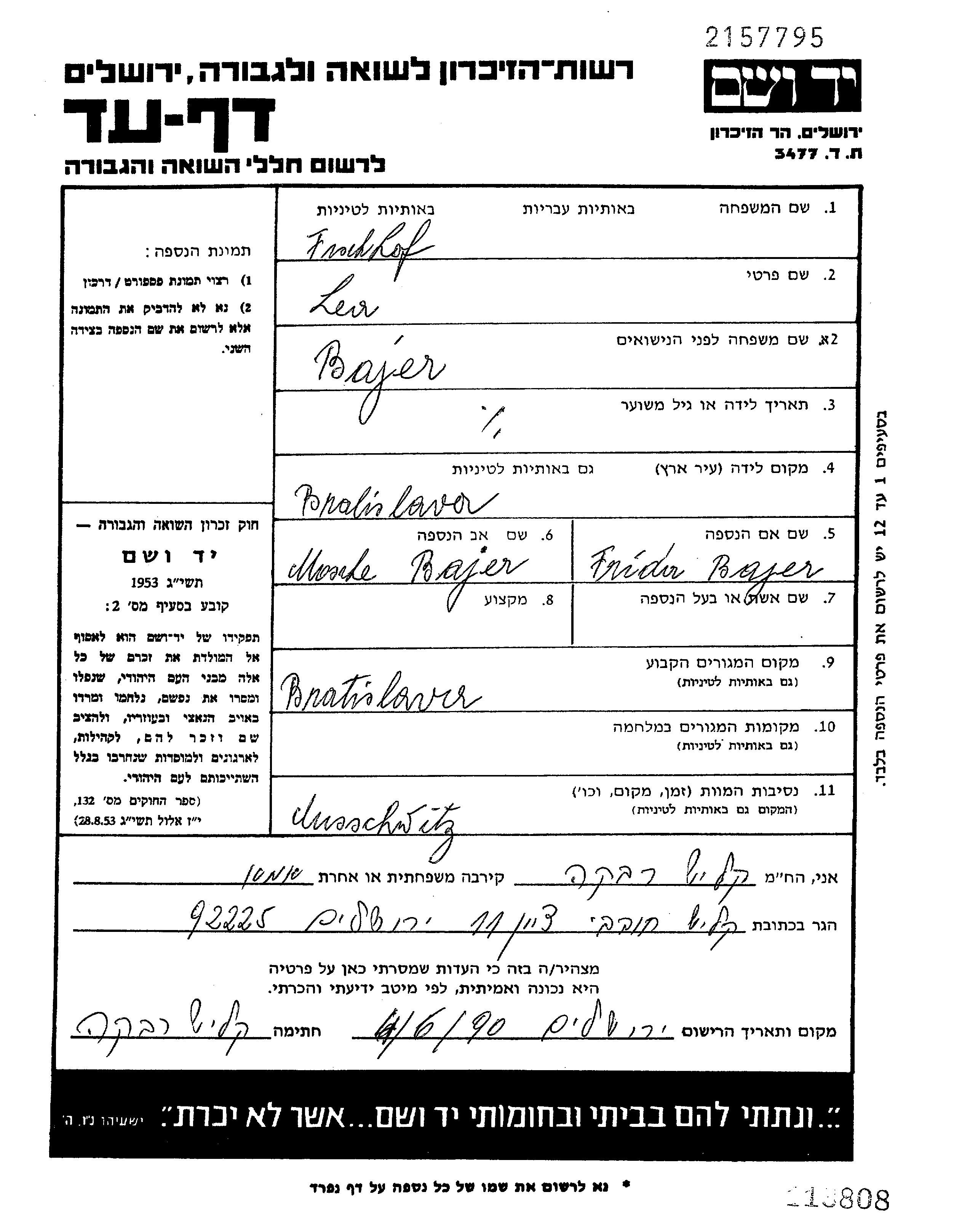 Yad Vashem - Pages of Testimony Names Memorial Collection