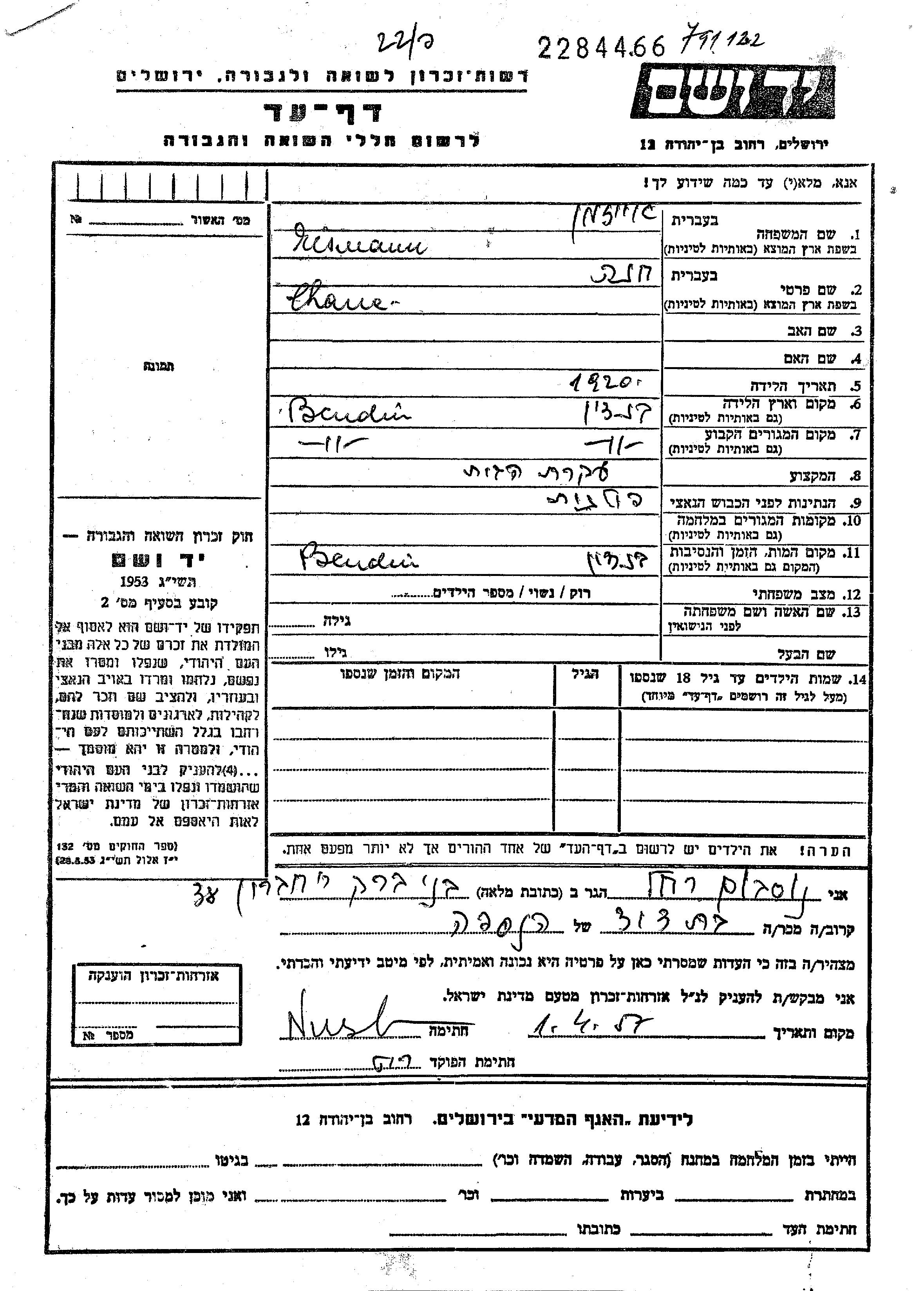 Yad Vashem - Pages of Testimony Names Memorial Collection