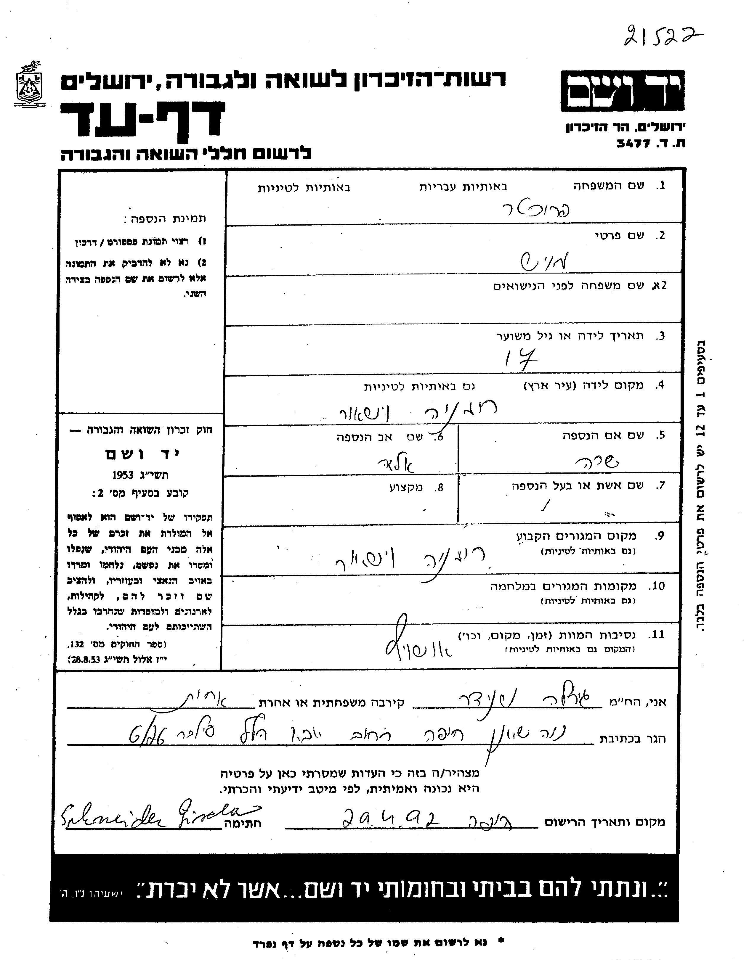 Yad Vashem - Pages of Testimony Names Memorial Collection