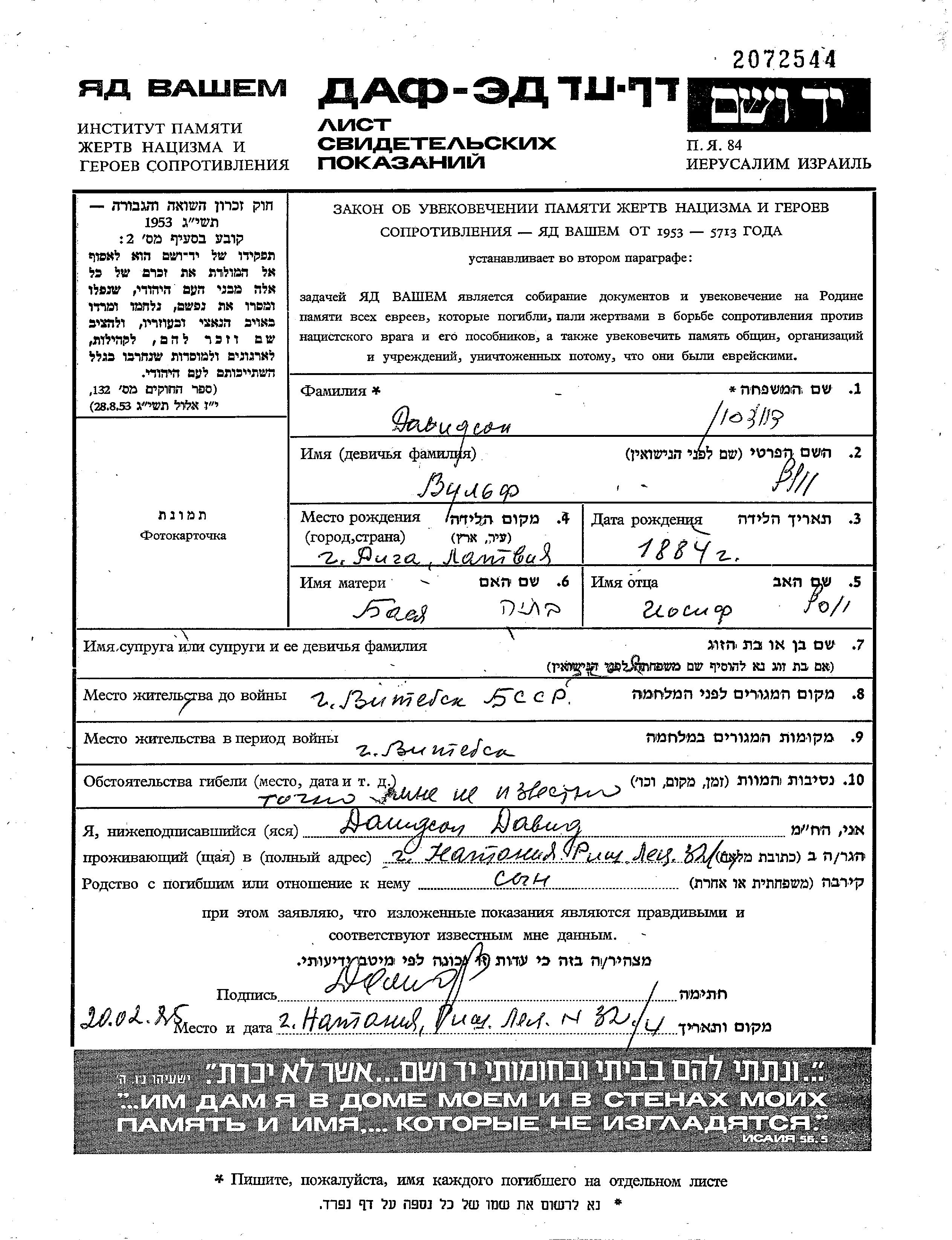 Yad Vashem - Pages of Testimony Names Memorial Collection