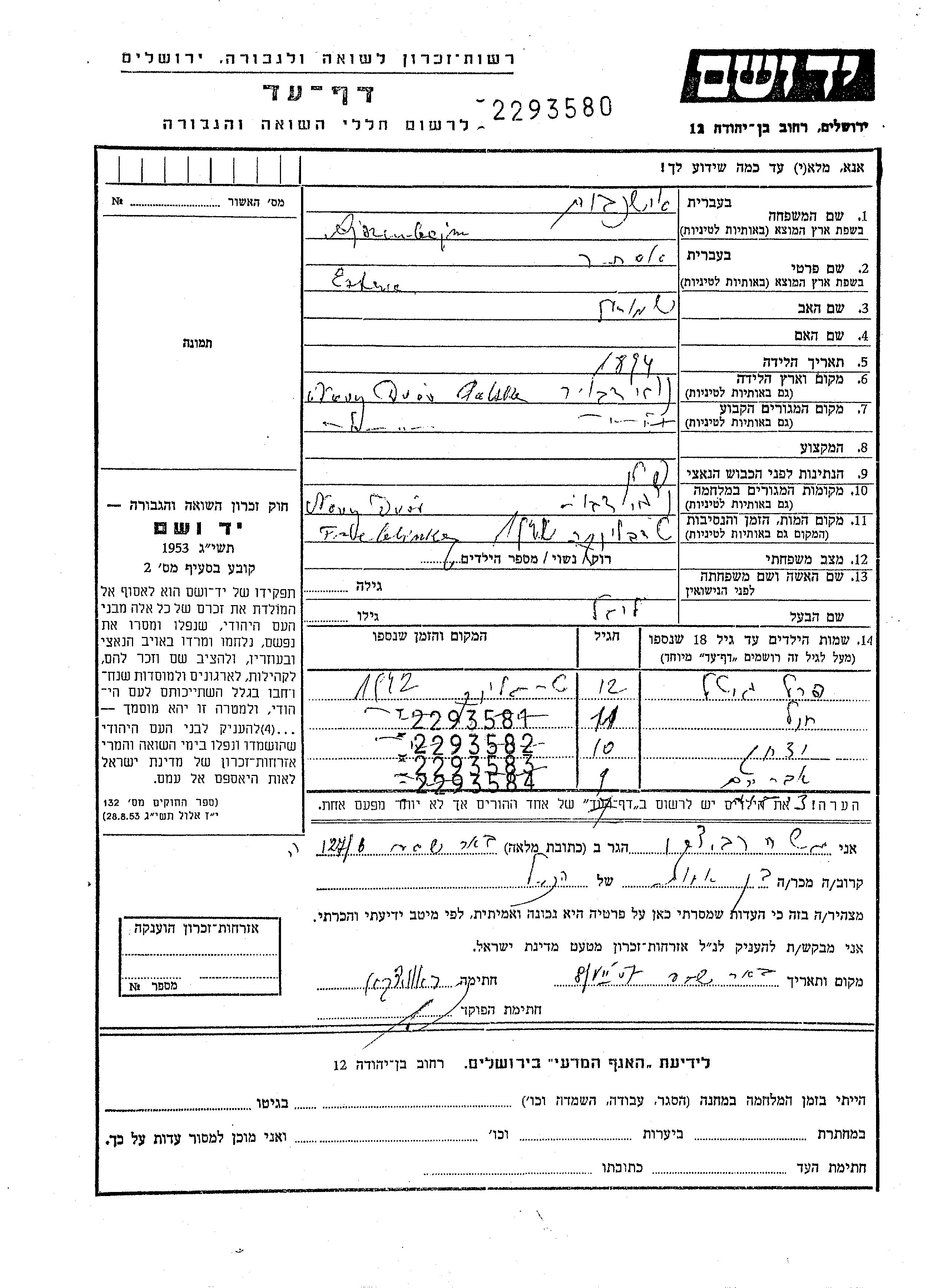 Yad Vashem - Pages of Testimony Names Memorial Collection