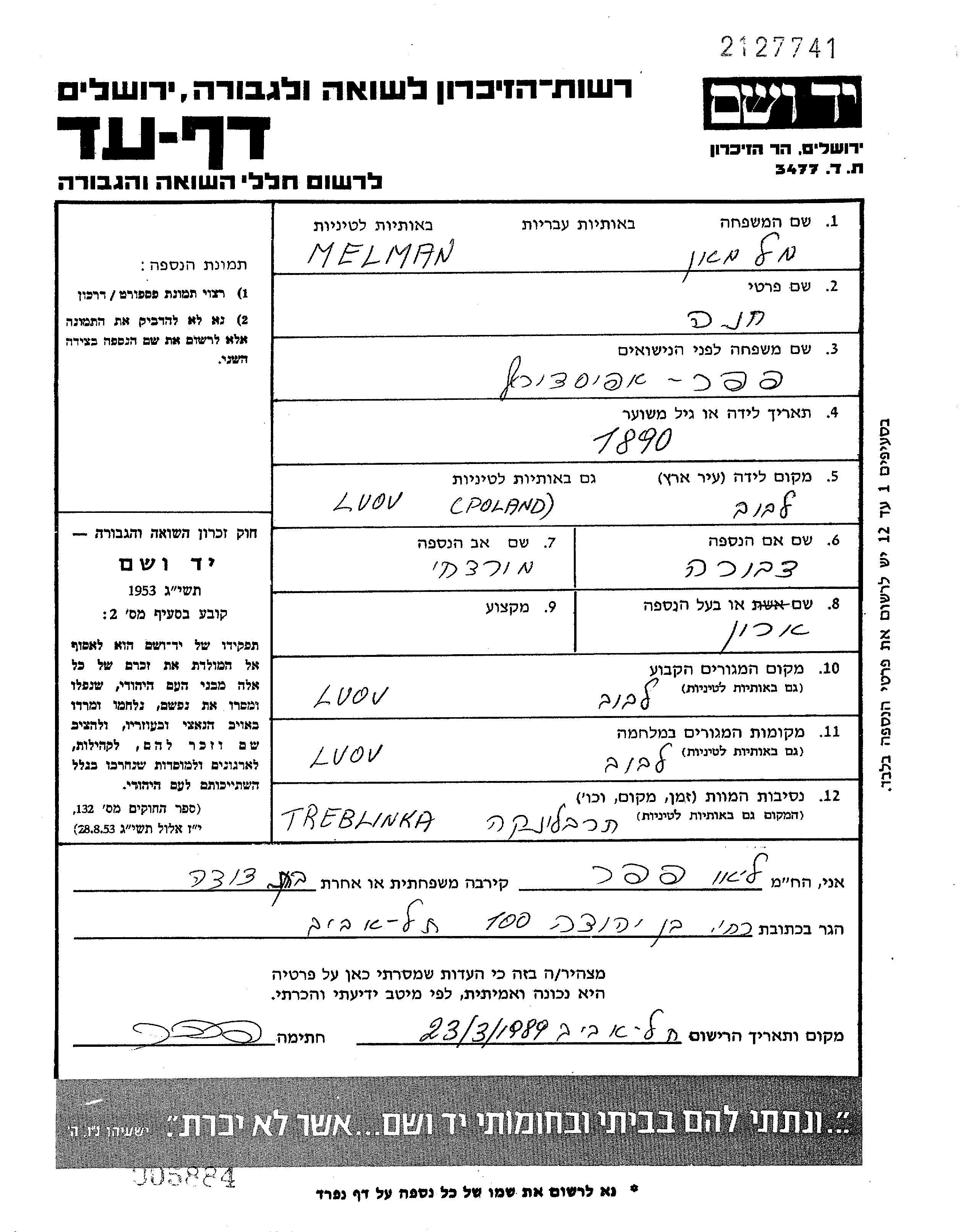 Yad Vashem - Pages of Testimony Names Memorial Collection