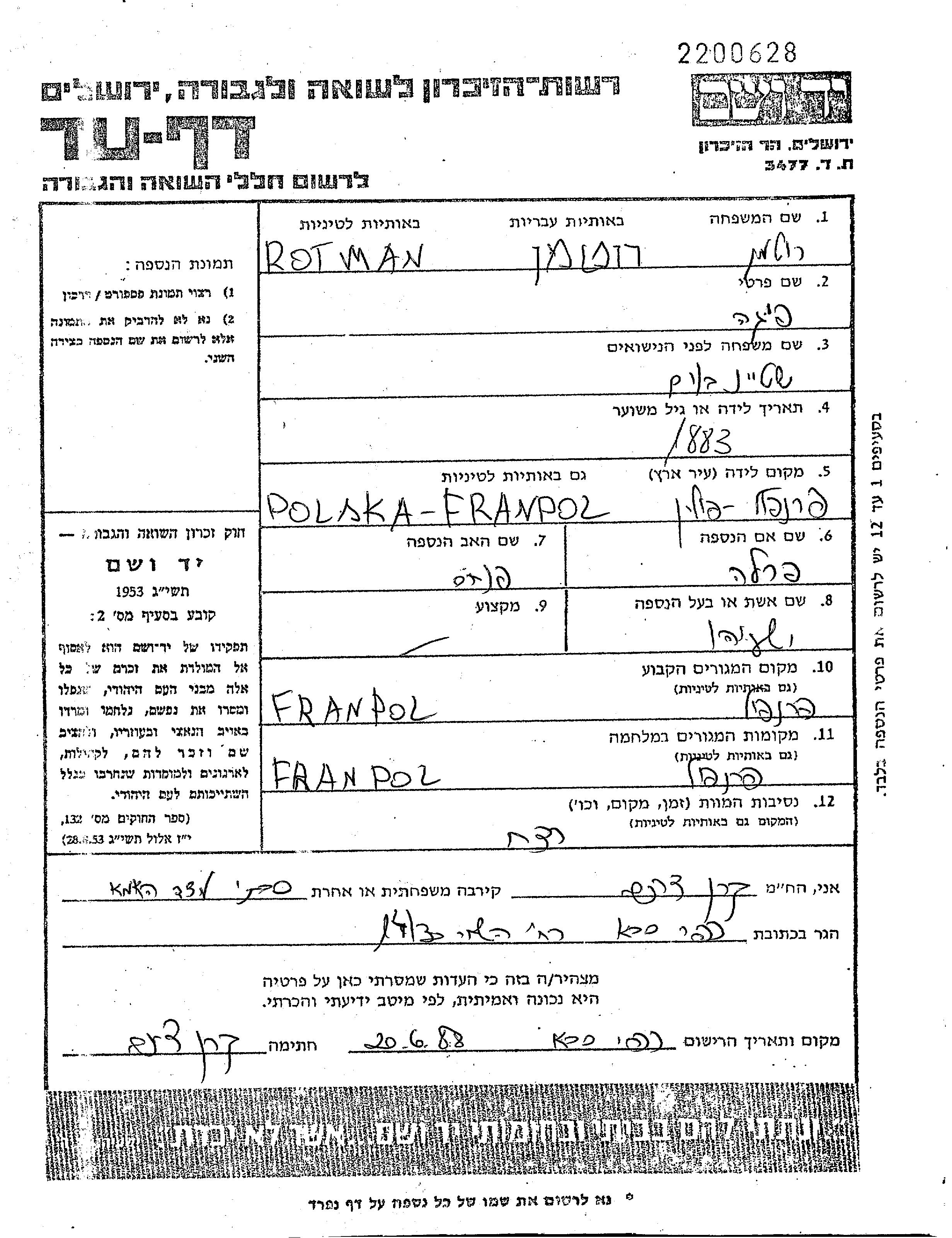 Yad Vashem - Pages of Testimony Names Memorial Collection