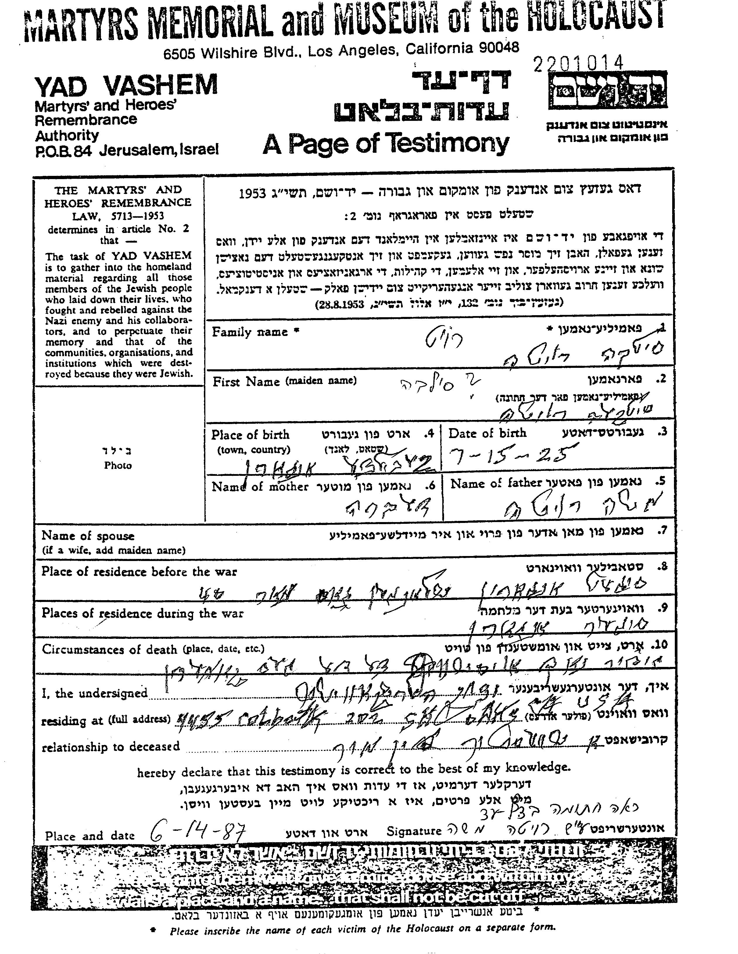 Yad Vashem - Pages of Testimony Names Memorial Collection
