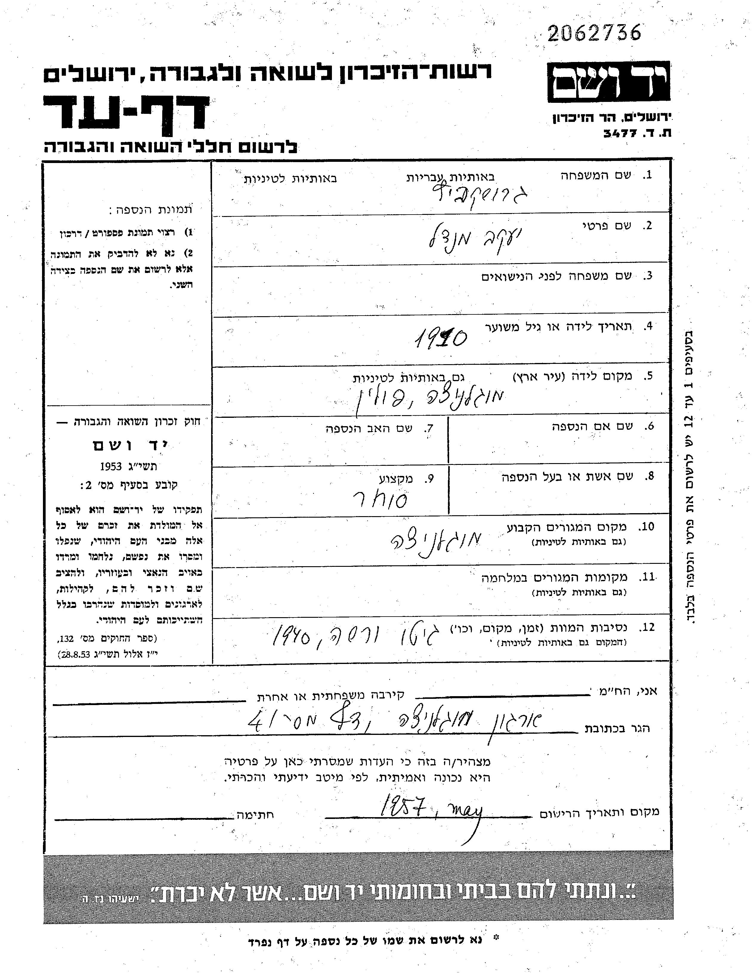 Yad Vashem - Pages of Testimony Names Memorial Collection