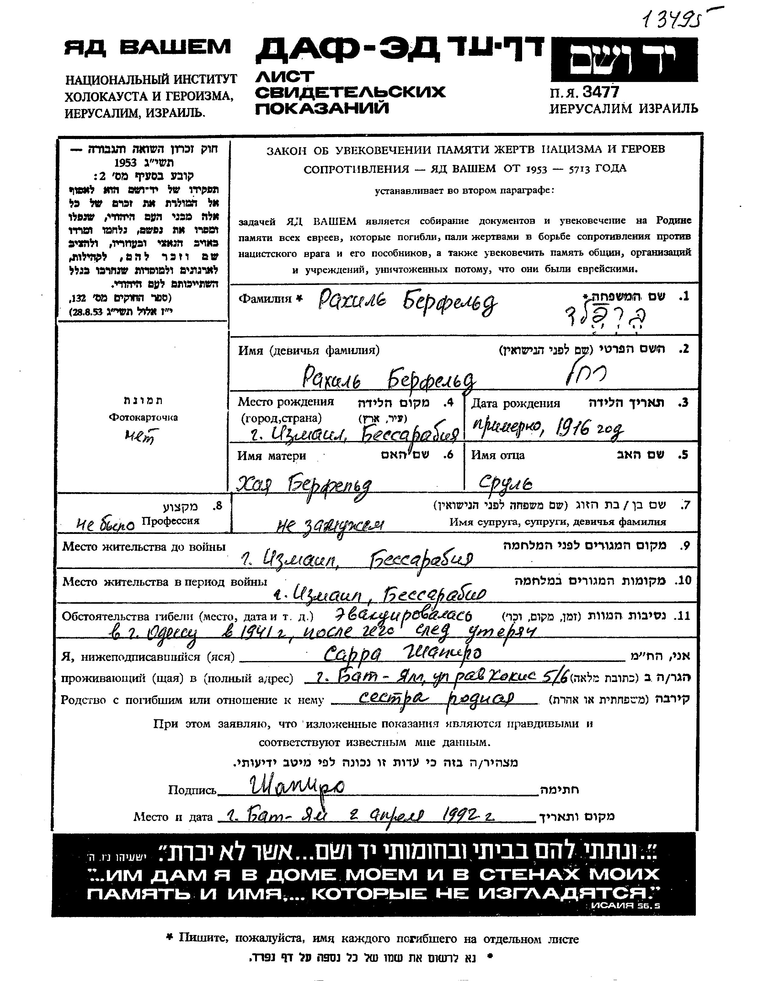 Au cours de la Shoah, les Juifs ont été assassinés de diverses façons : gazage, exécution par balle, immolation, noyade, enterrés vivants, épuisement par les travaux forcés, affamement, maladies et épidémies, privation de soins médicaux et de mesures de salubrité, etc. Certains Juifs ont mis fin à leur vie pour échapper à l'arrestation, aux persécutions ou aux souffrances permanentes et sans aucun espoir. Des dizaines de milliers de soldats juifs servant dans l’armée soviétique et capturés comme prisonniers de guerre furent sélectionnés comme juifs et assassinés. Beaucoup furent enregistrés comme «disparus au combat».