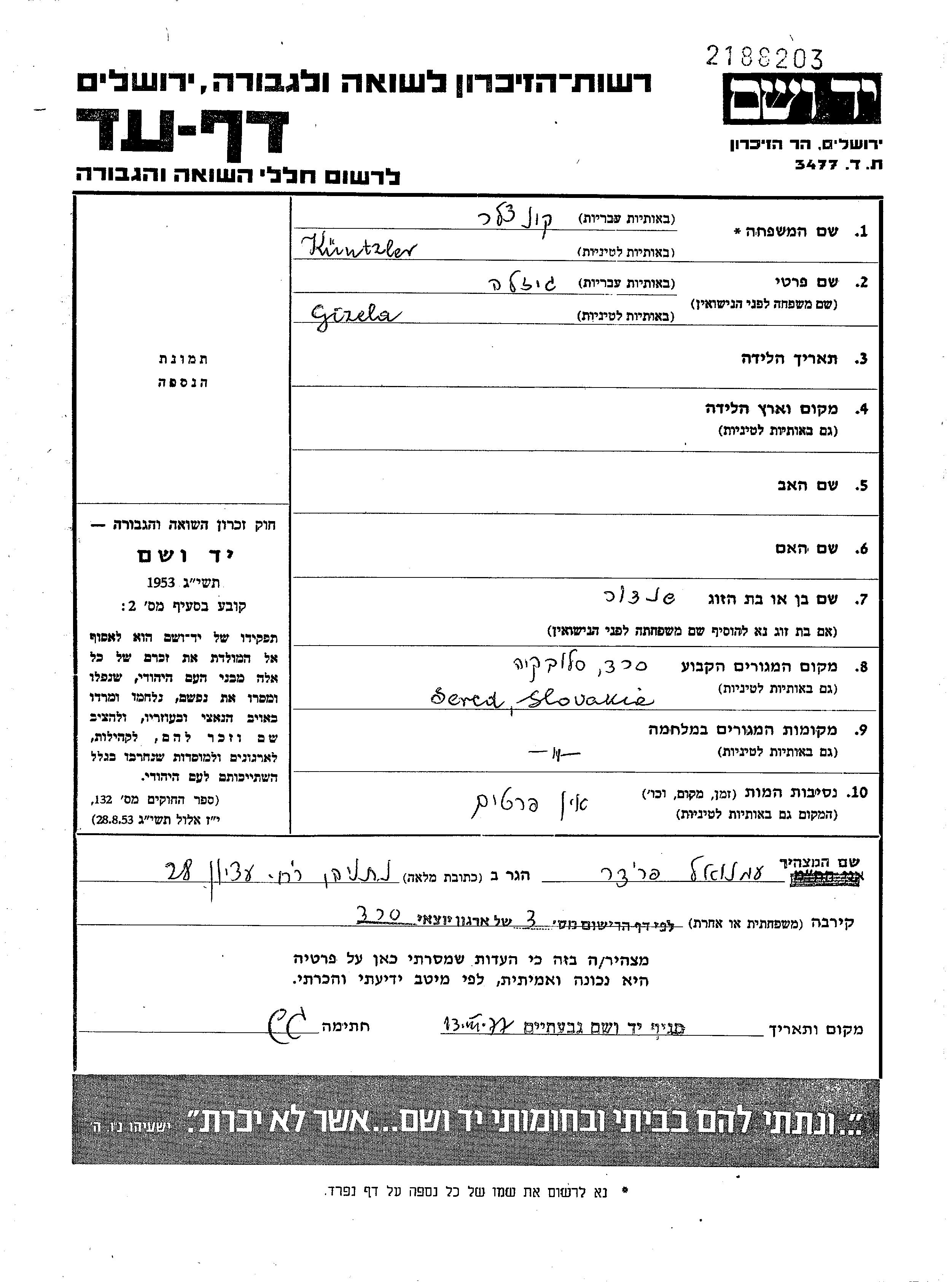 Yad Vashem - Pages of Testimony Names Memorial Collection