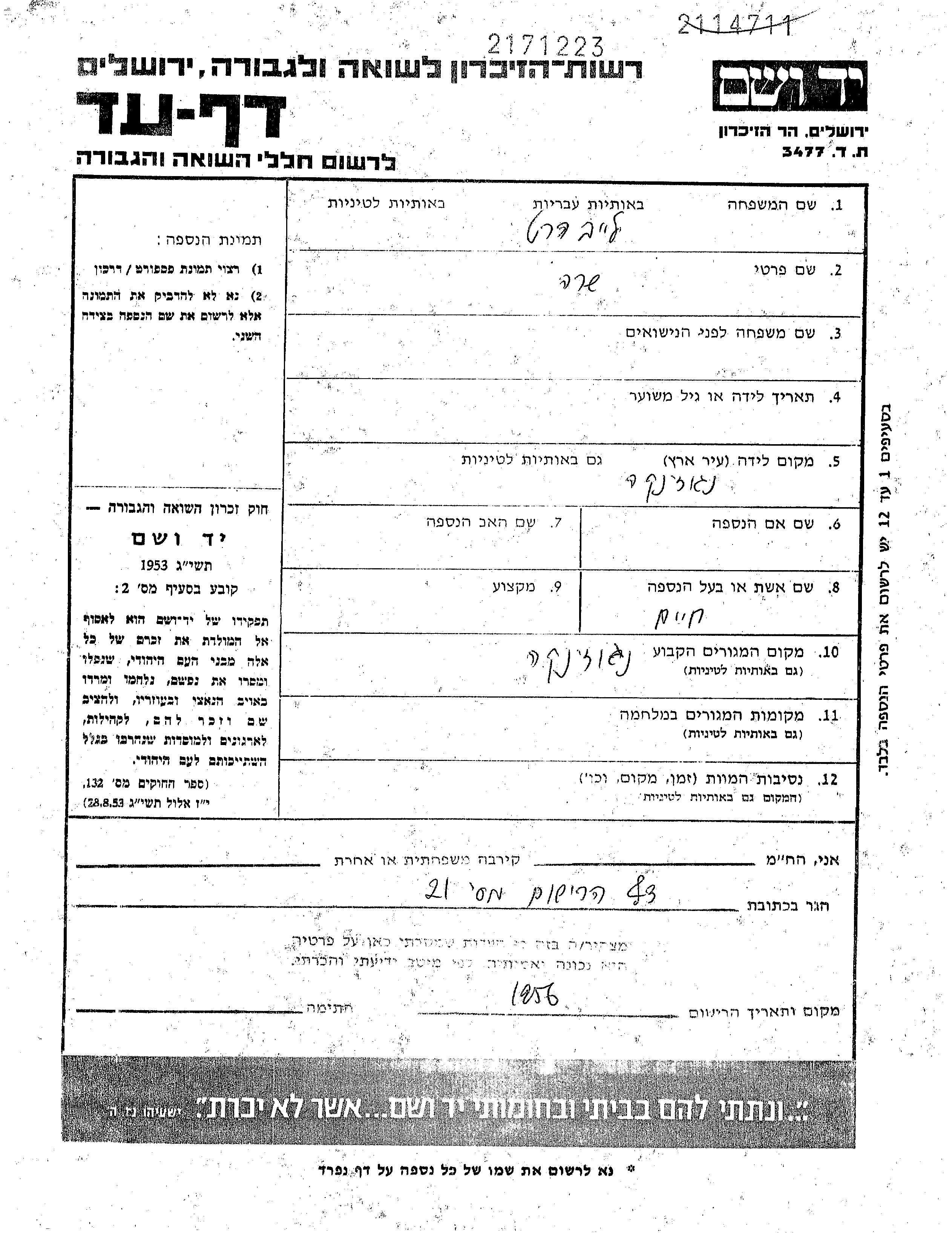 Yad Vashem - Pages of Testimony Names Memorial Collection