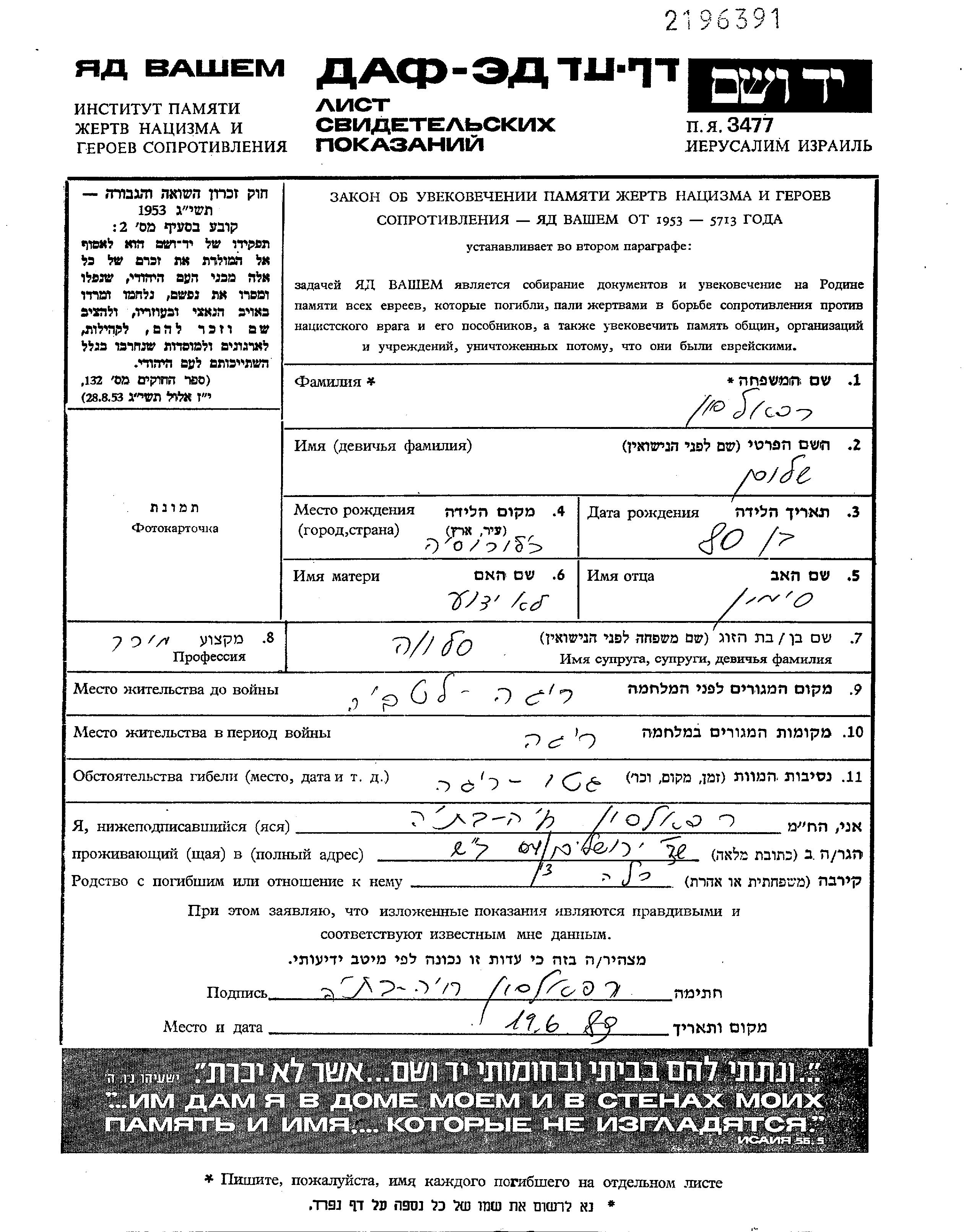 Yad Vashem - Pages of Testimony Names Memorial Collection