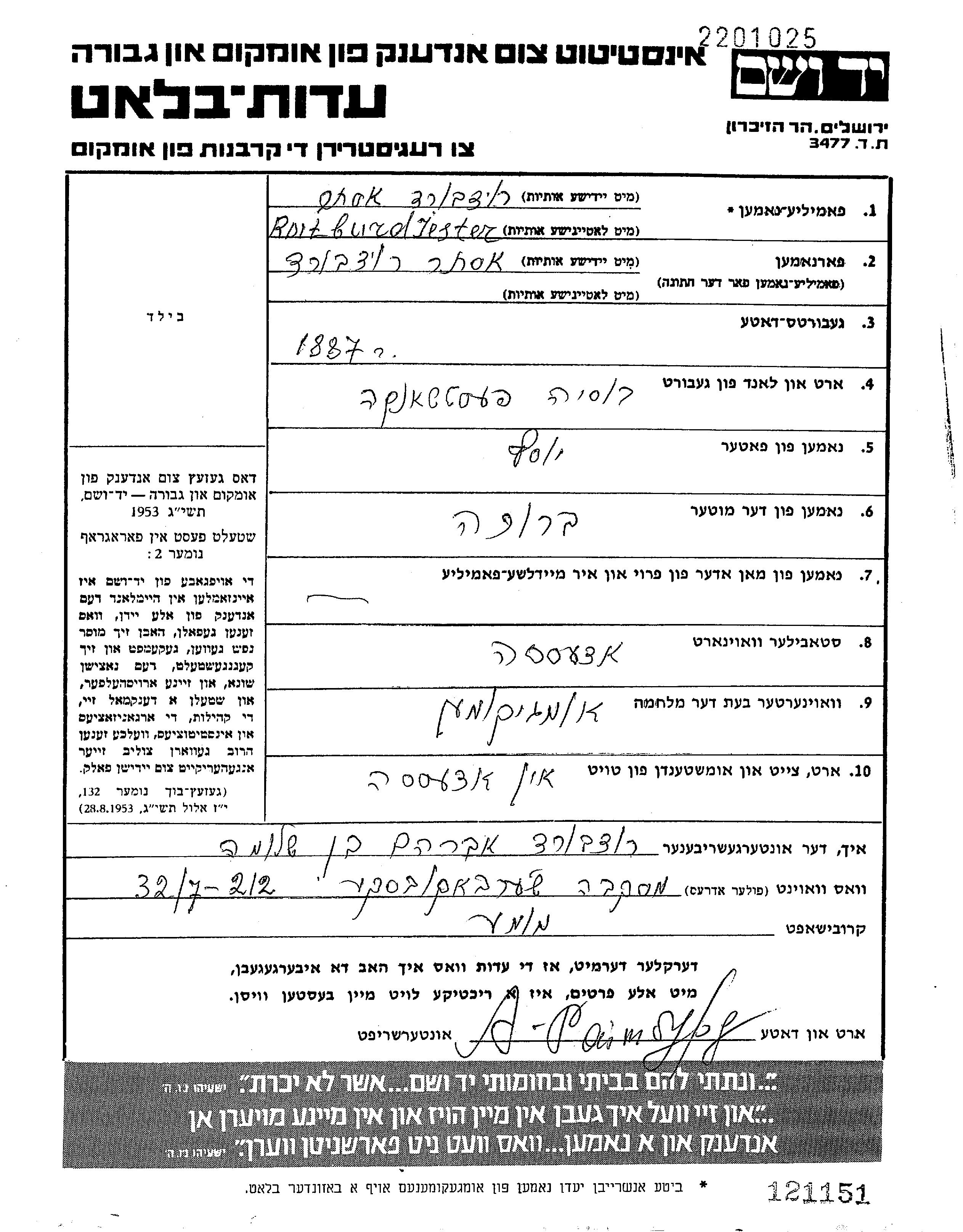 Yad Vashem - Pages of Testimony Names Memorial Collection