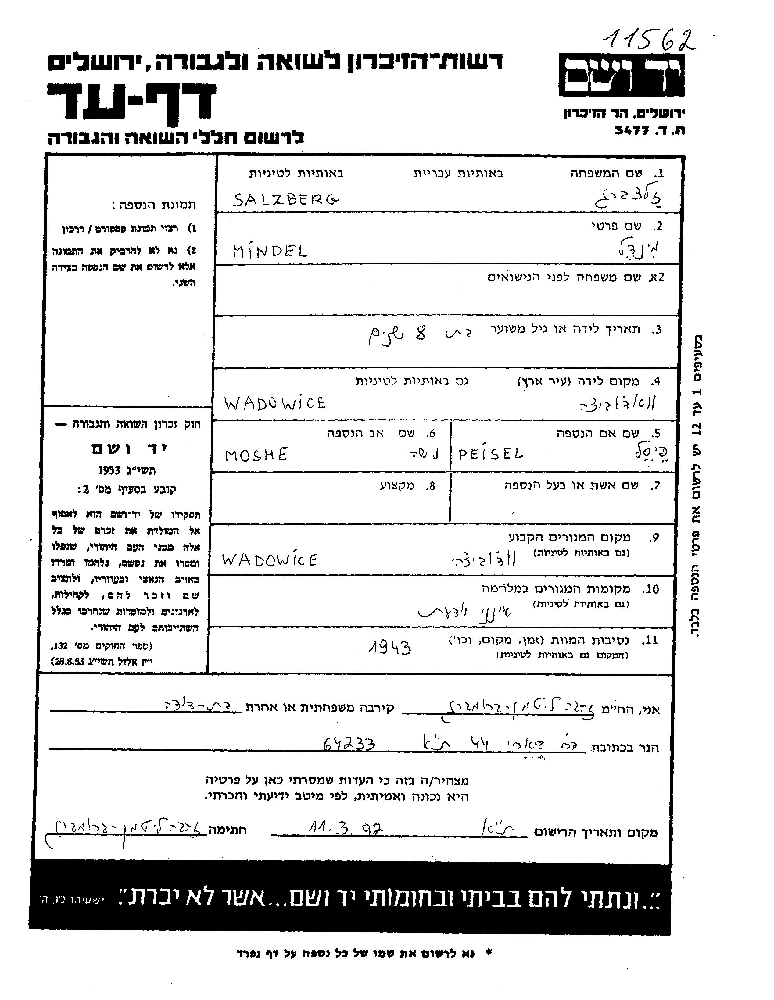 Yad Vashem - Pages of Testimony Names Memorial Collection