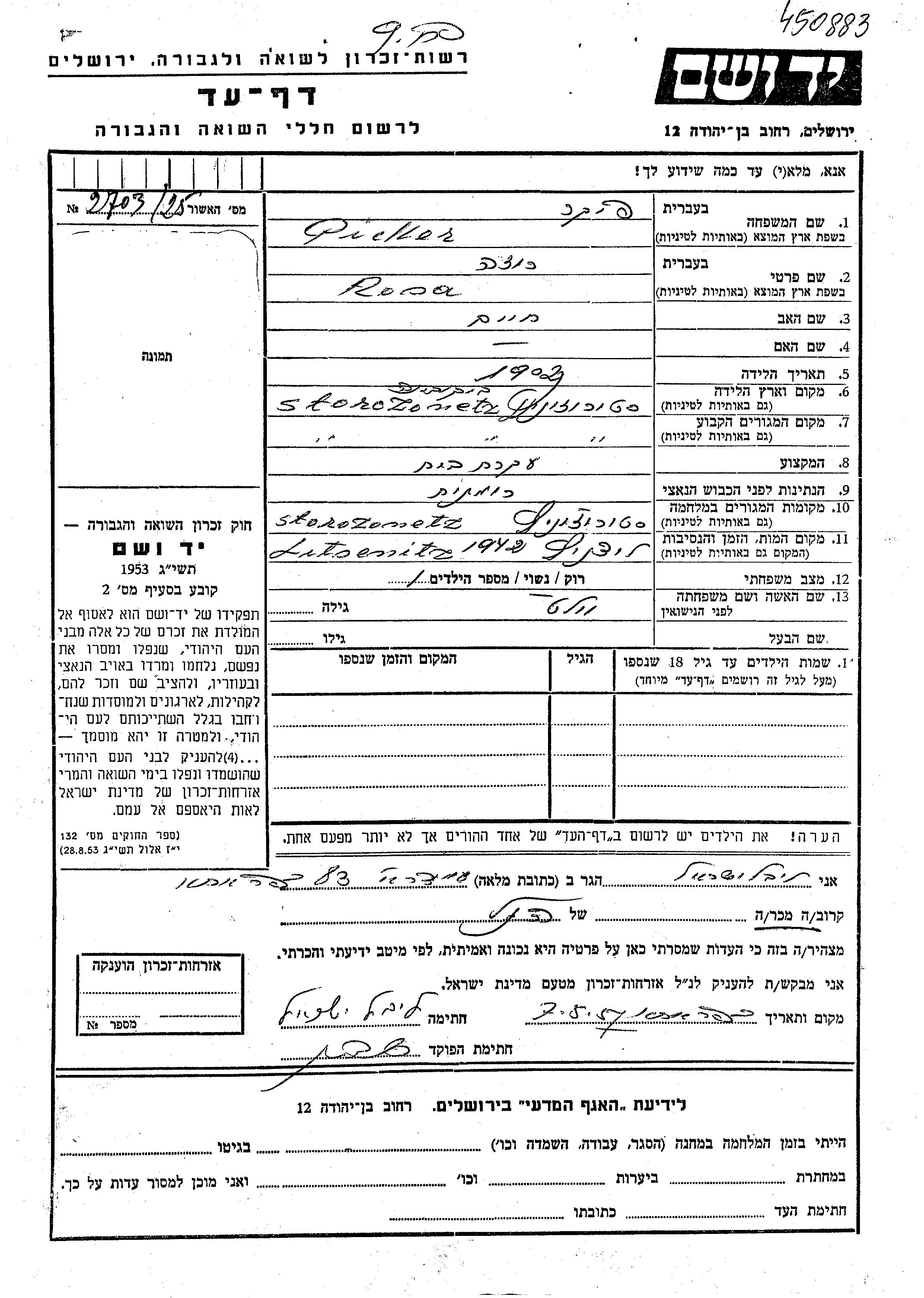 Yad Vashem - Pages of Testimony Names Memorial Collection