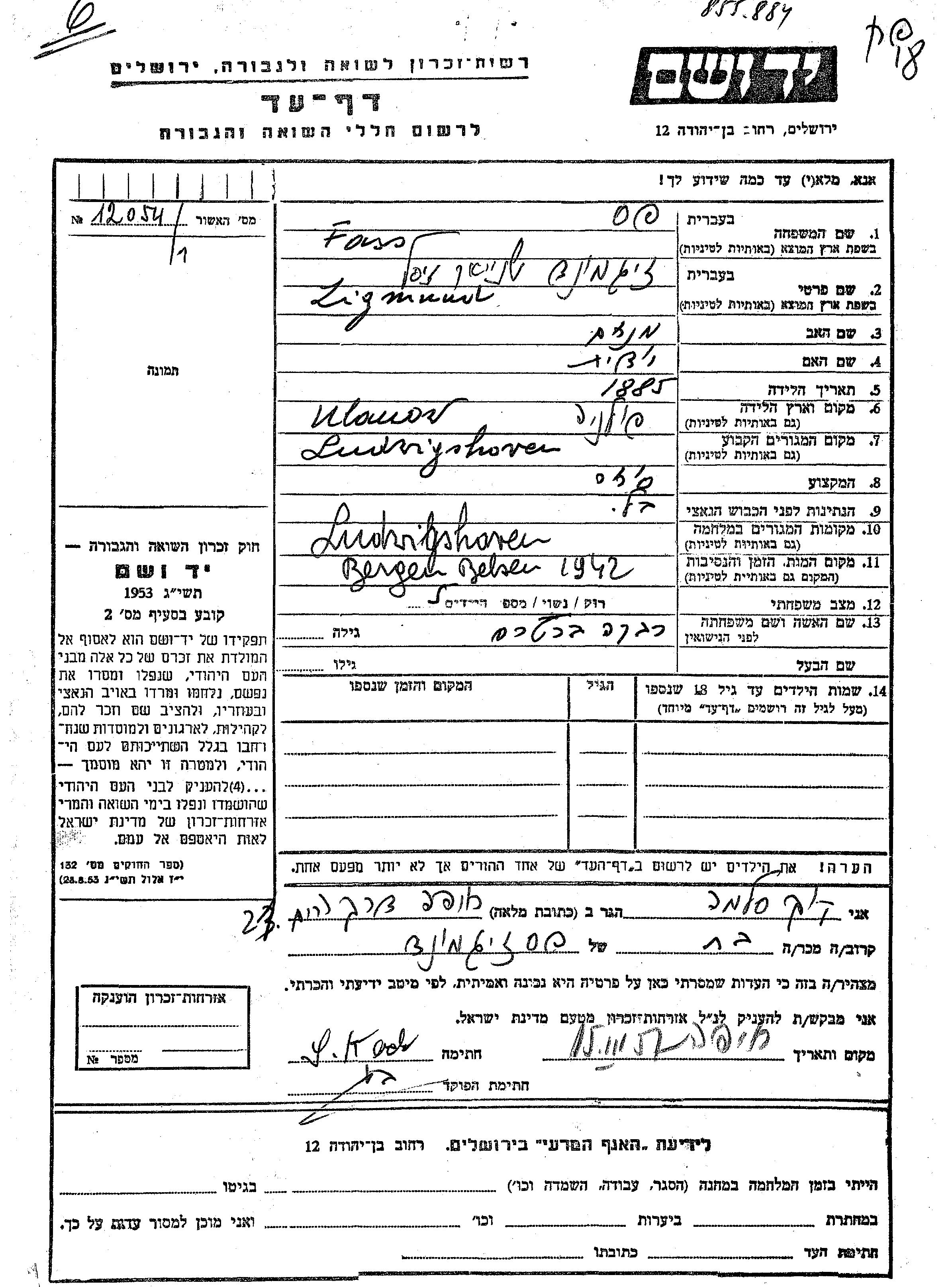 Yad Vashem - Pages of Testimony Names Memorial Collection