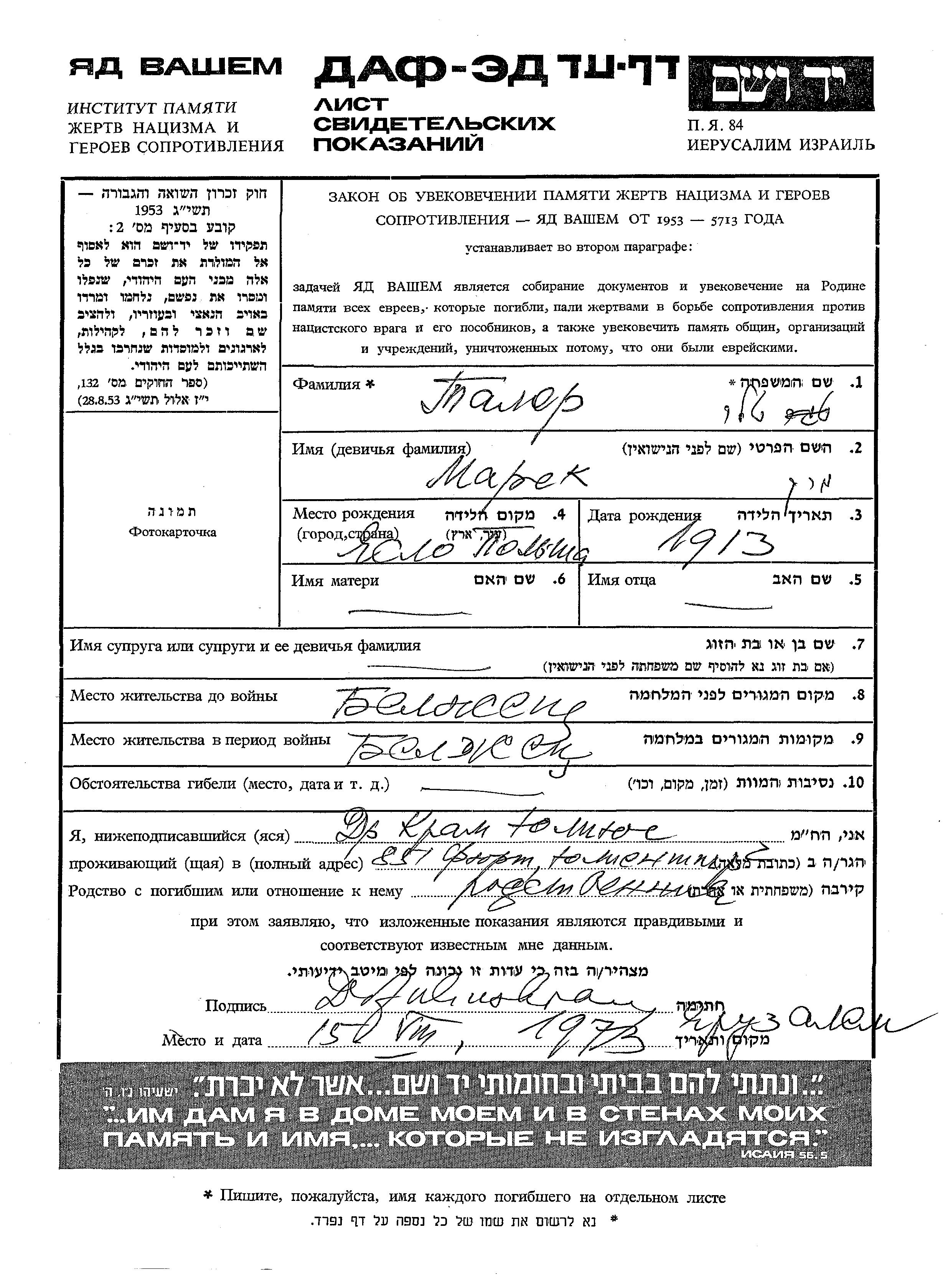 Yad Vashem - Pages of Testimony Names Memorial Collection
