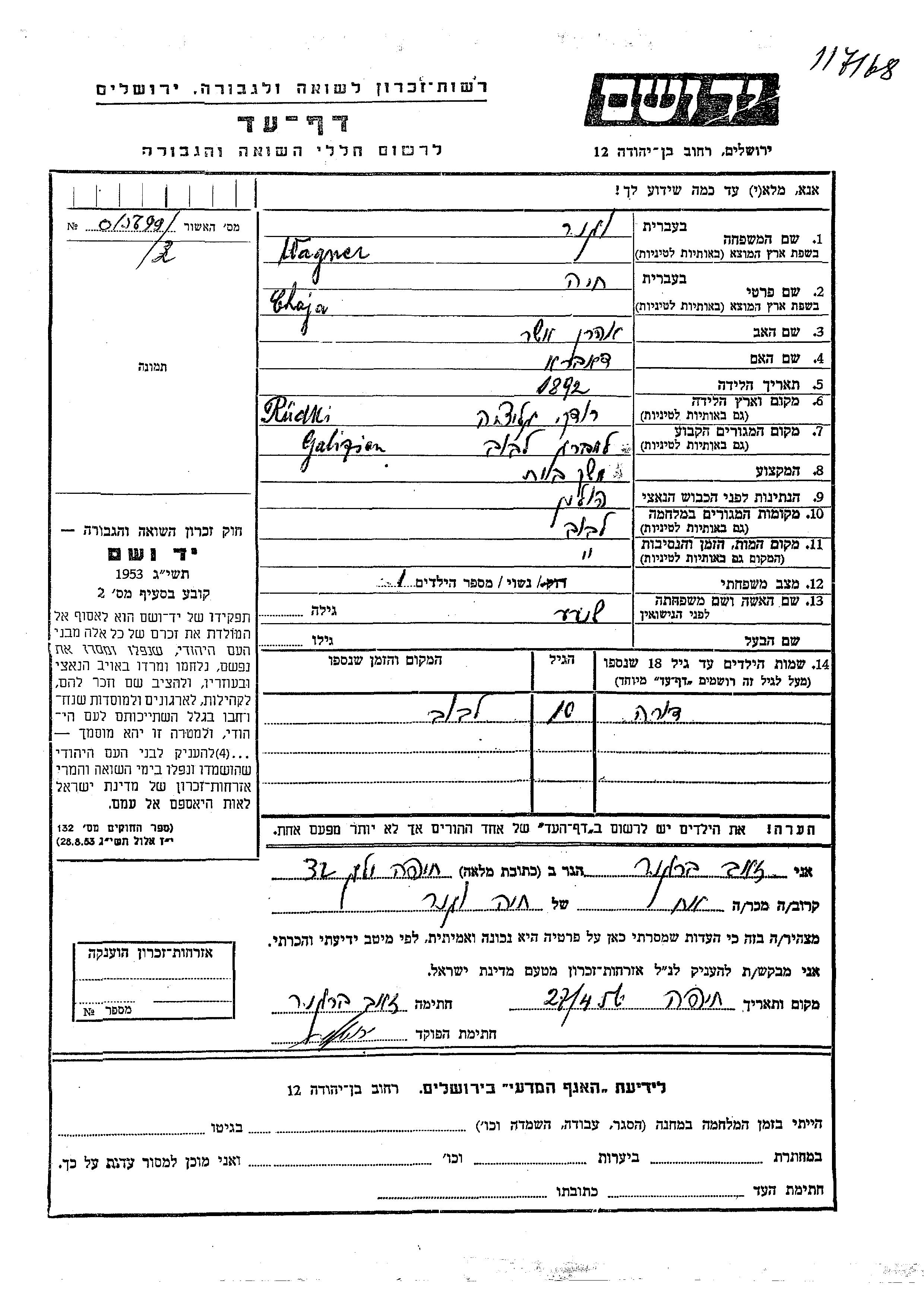 Yad Vashem - Pages of Testimony Names Memorial Collection