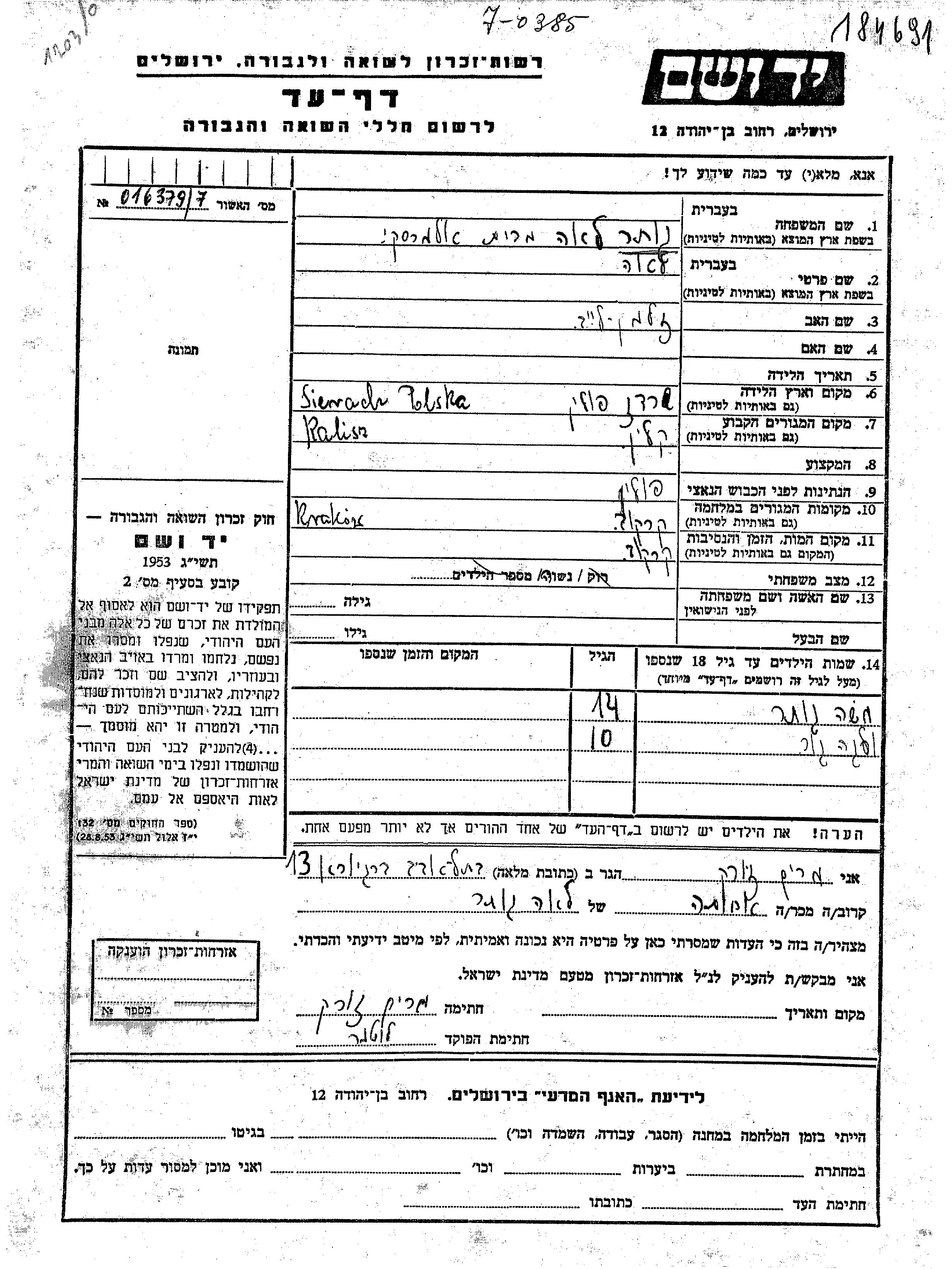 Yad Vashem - Pages of Testimony Names Memorial Collection