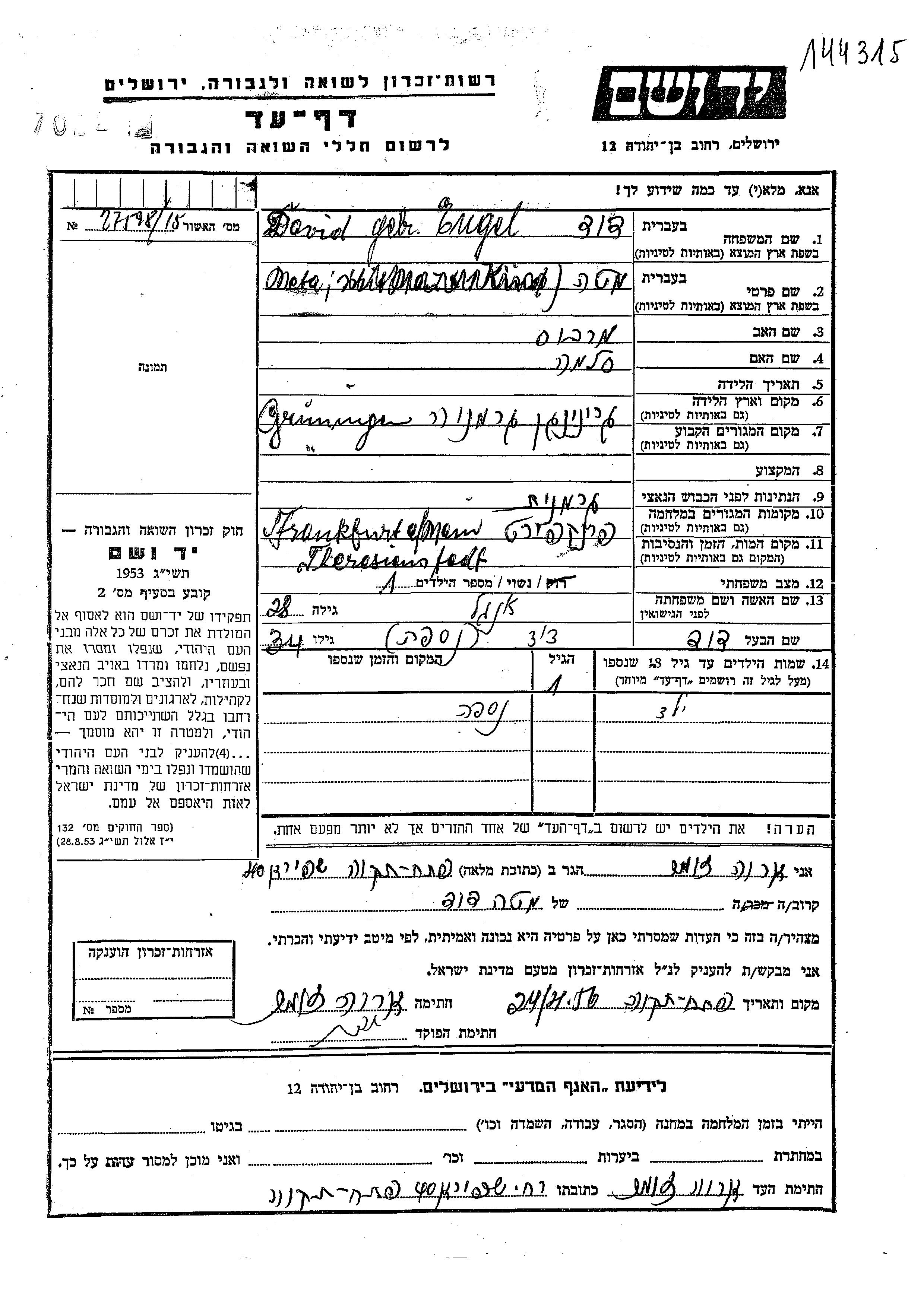 Yad Vashem - Pages of Testimony Names Memorial Collection