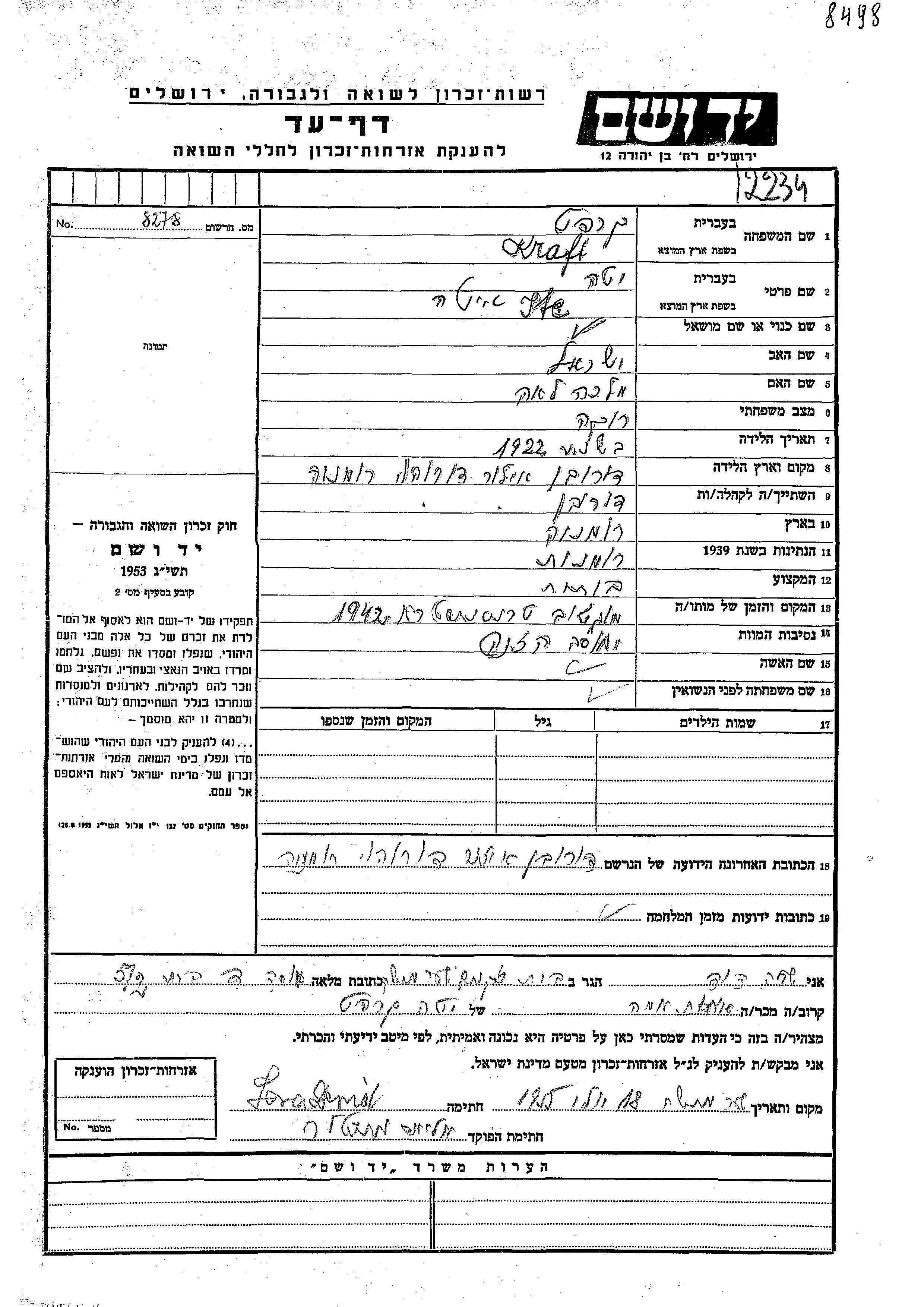 Yad Vashem - Pages of Testimony Names Memorial Collection