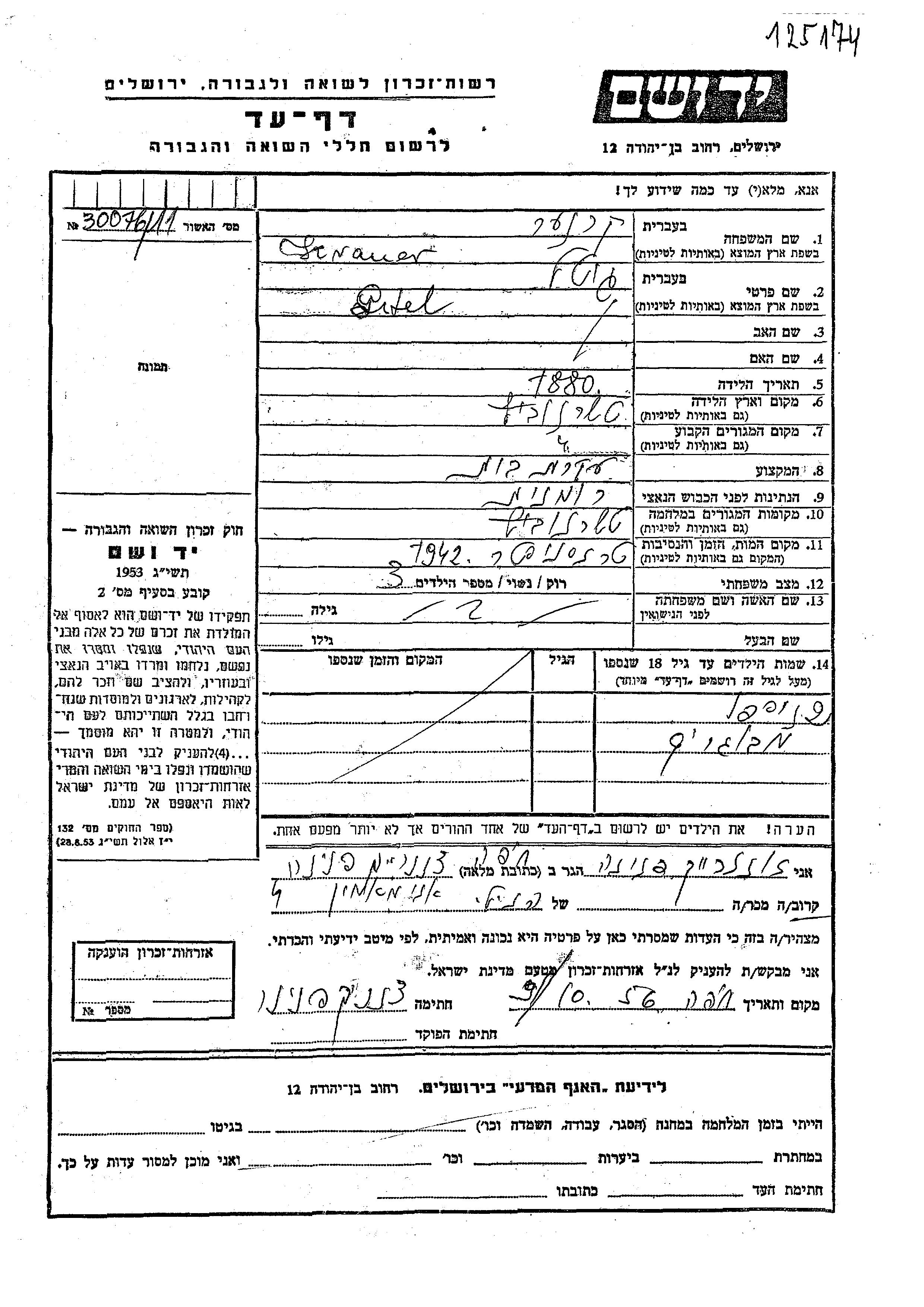 Yad Vashem - Pages of Testimony Names Memorial Collection