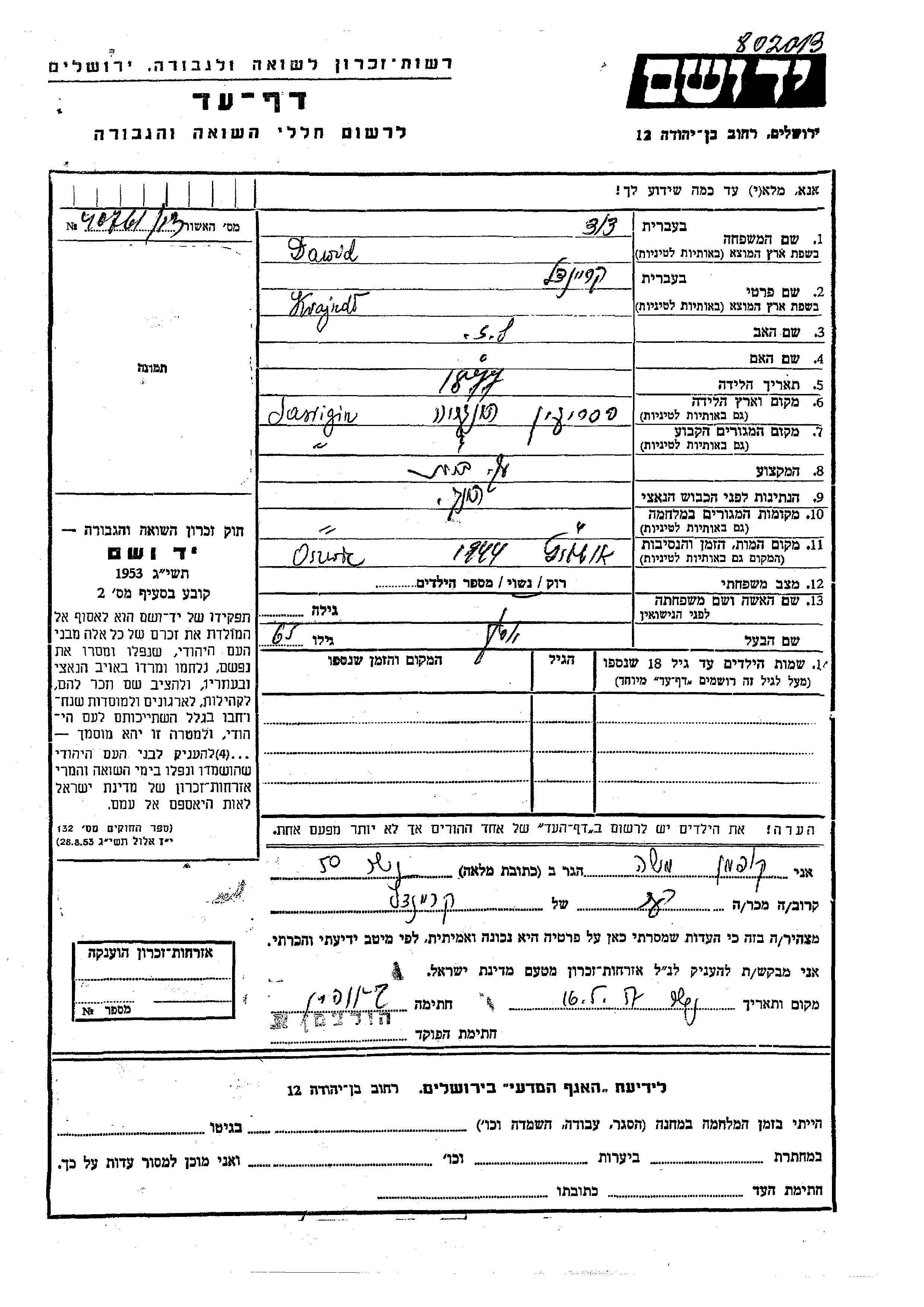 Yad Vashem - Pages of Testimony Names Memorial Collection