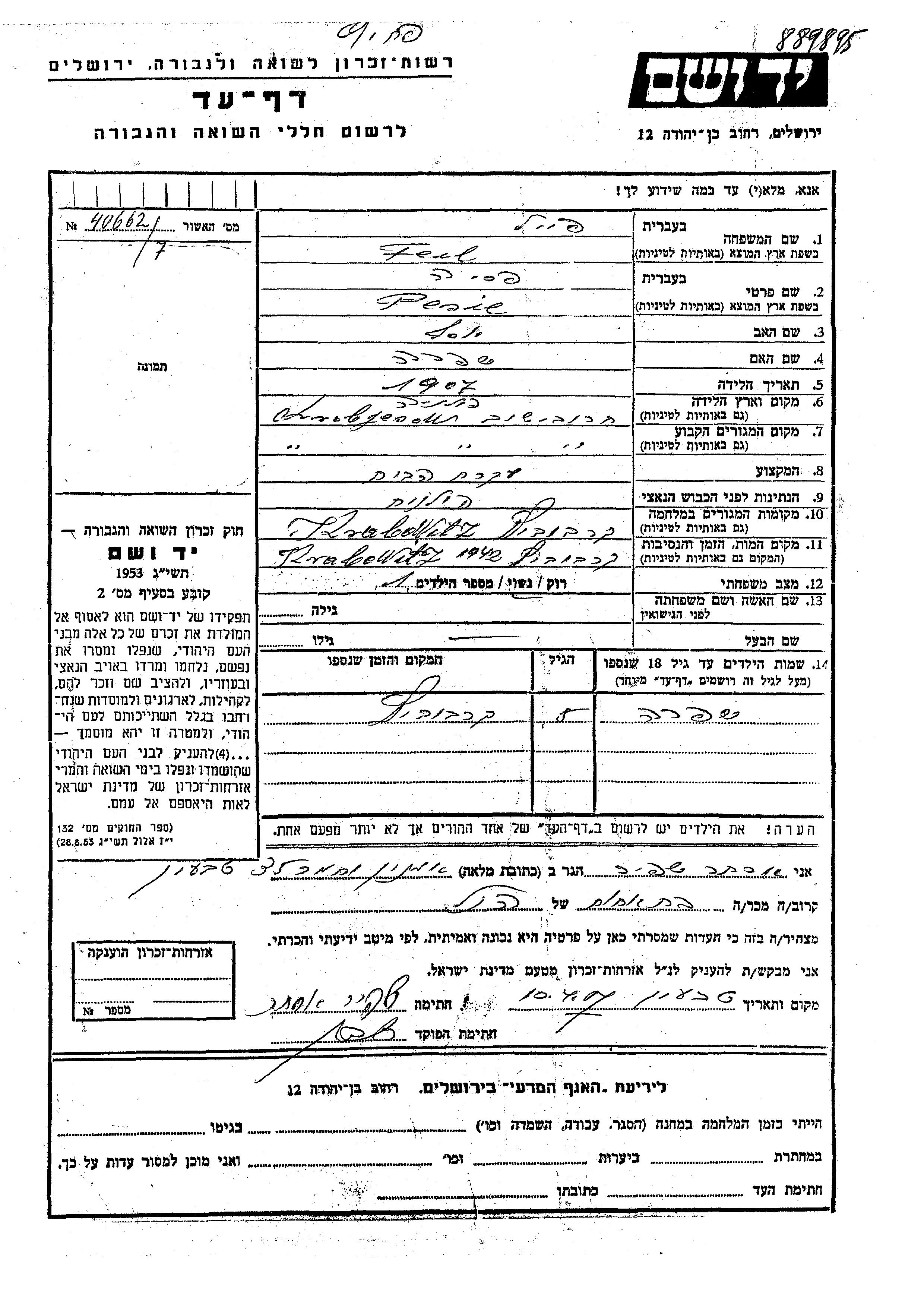 Yad Vashem - Pages of Testimony Names Memorial Collection