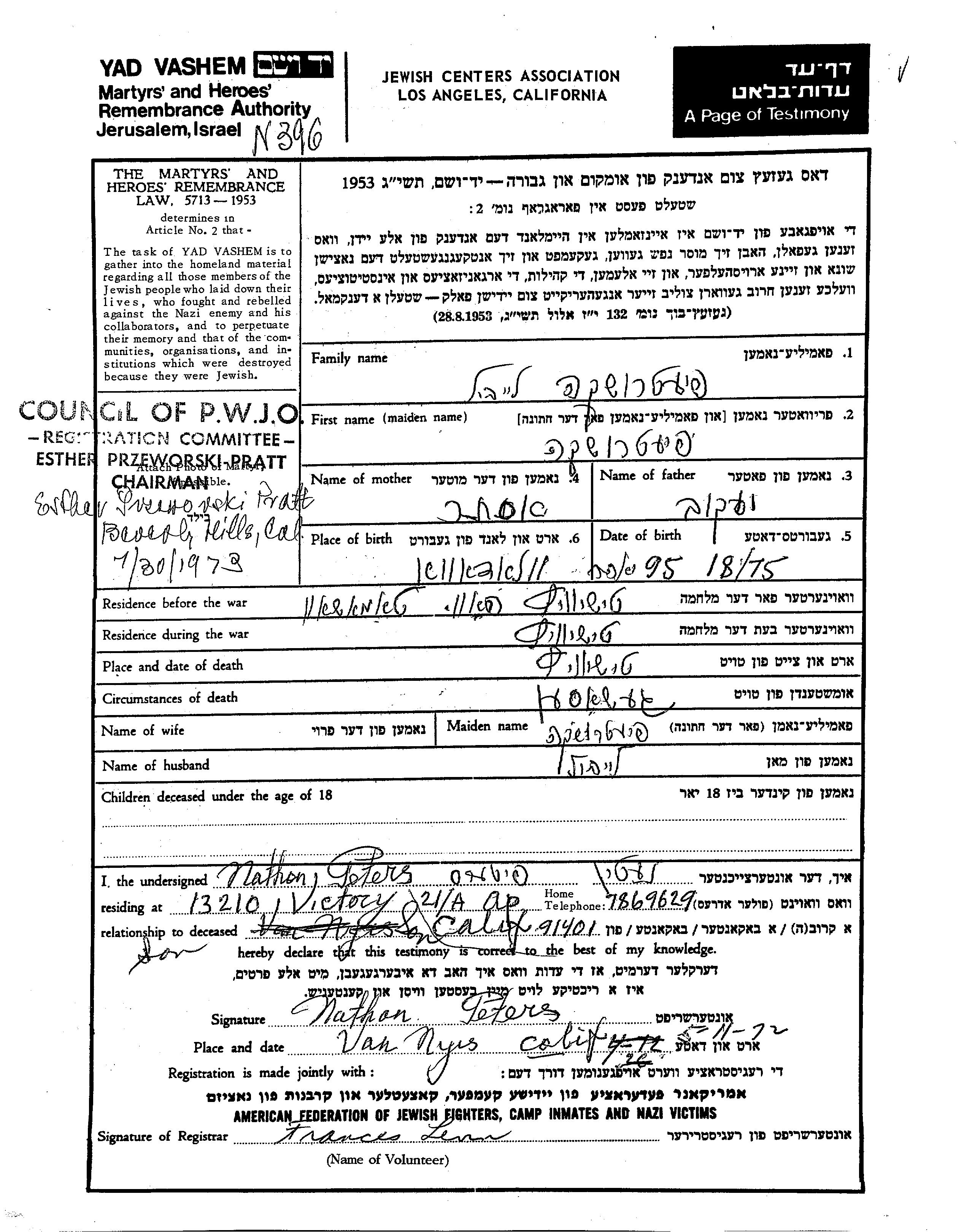 Yad Vashem - Pages of Testimony Names Memorial Collection