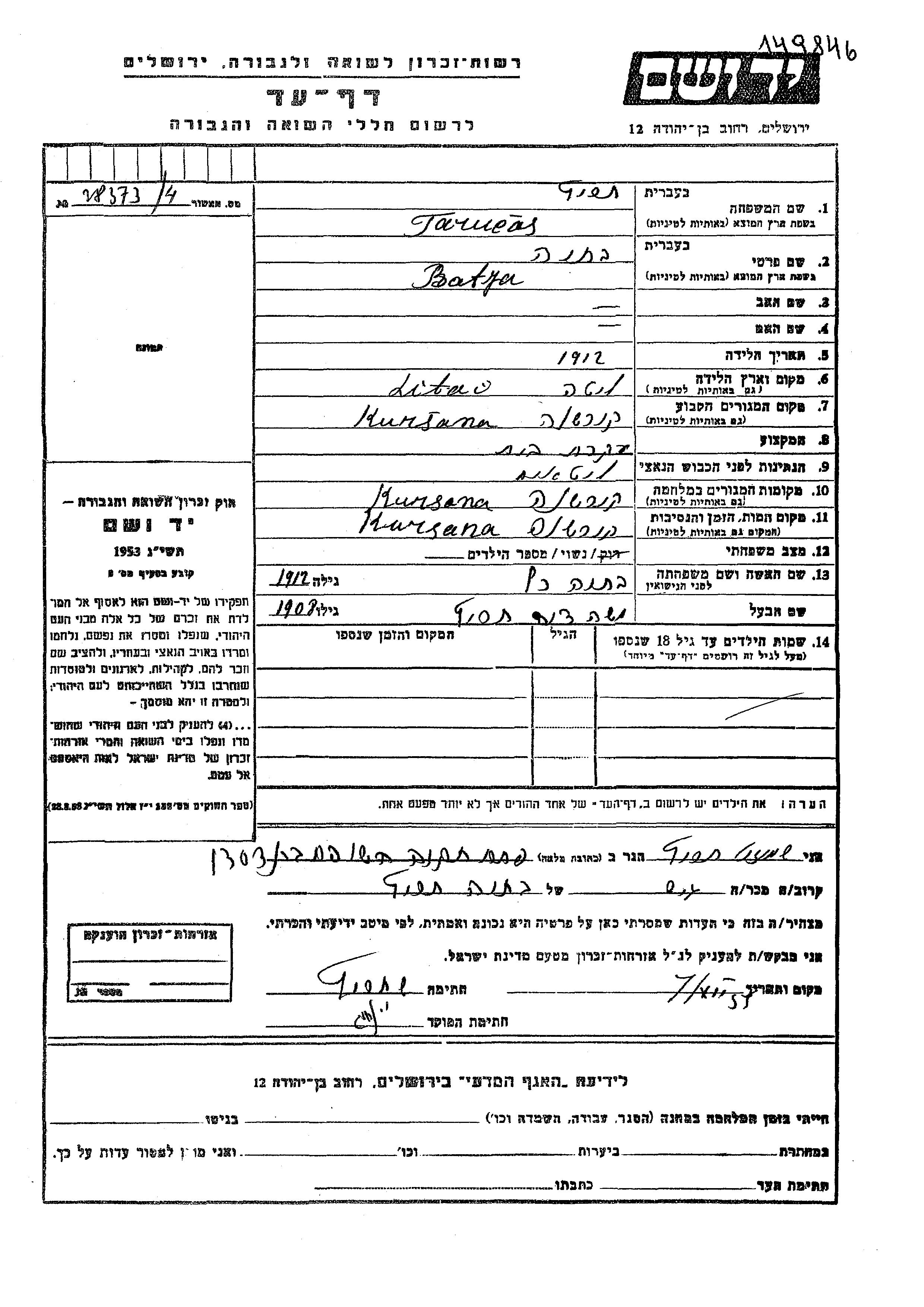 Tarucos Batya 1912 Kuršėnai, Lituanie Feuille de témoignage
