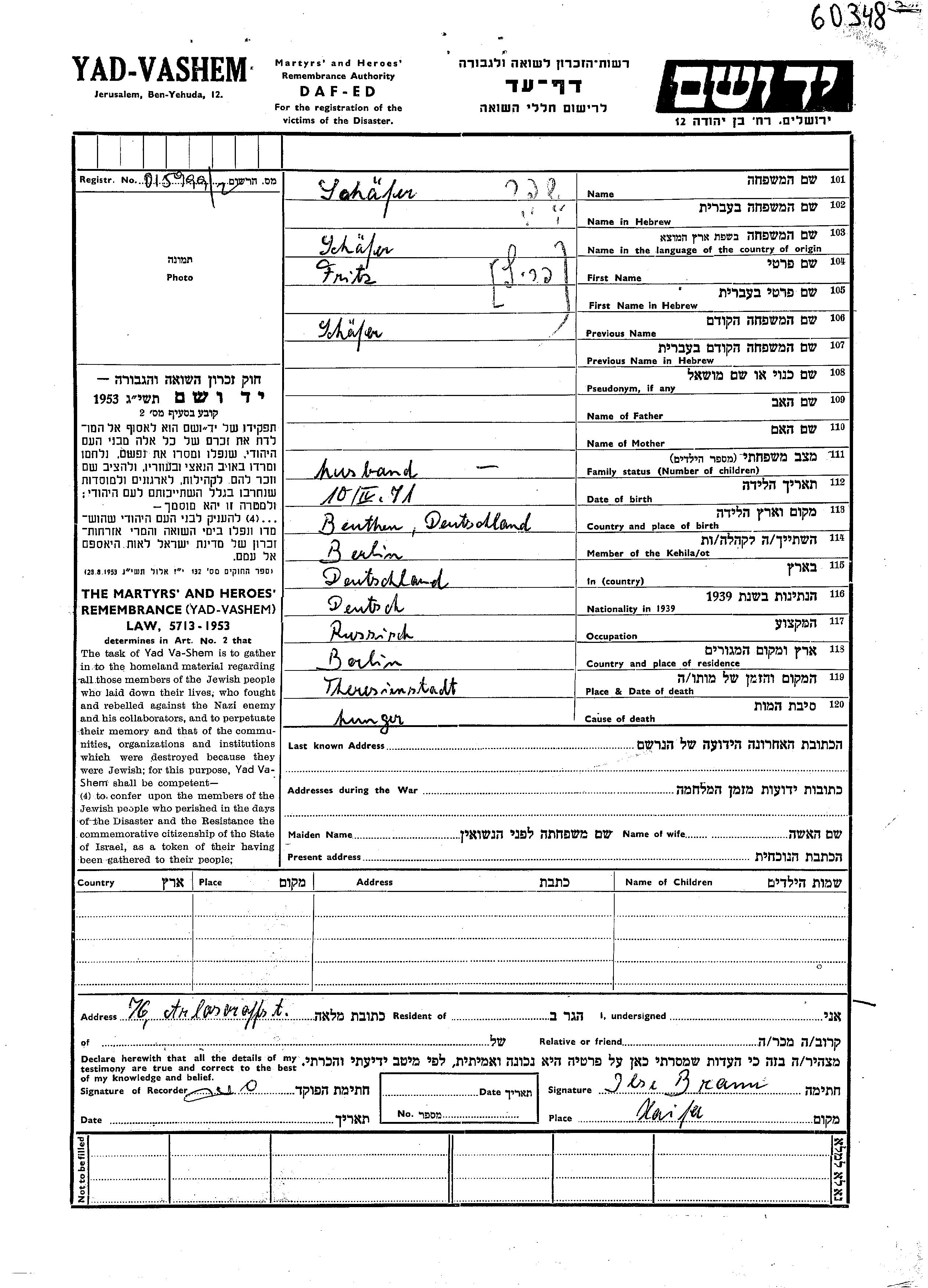 Yad Vashem - Pages of Testimony Names Memorial Collection