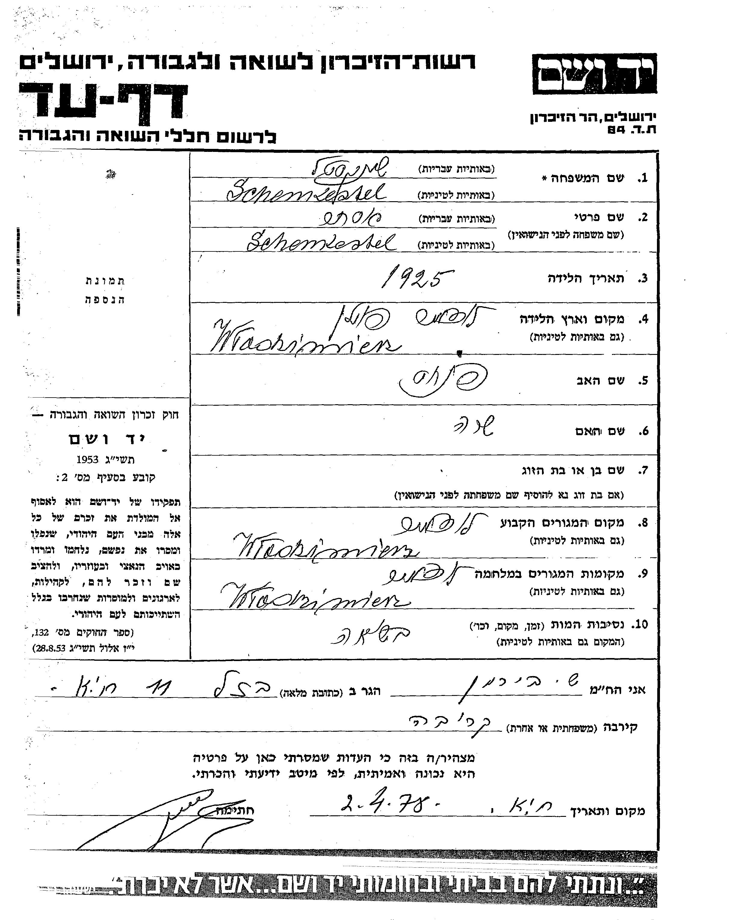 Yad Vashem - Pages of Testimony Names Memorial Collection