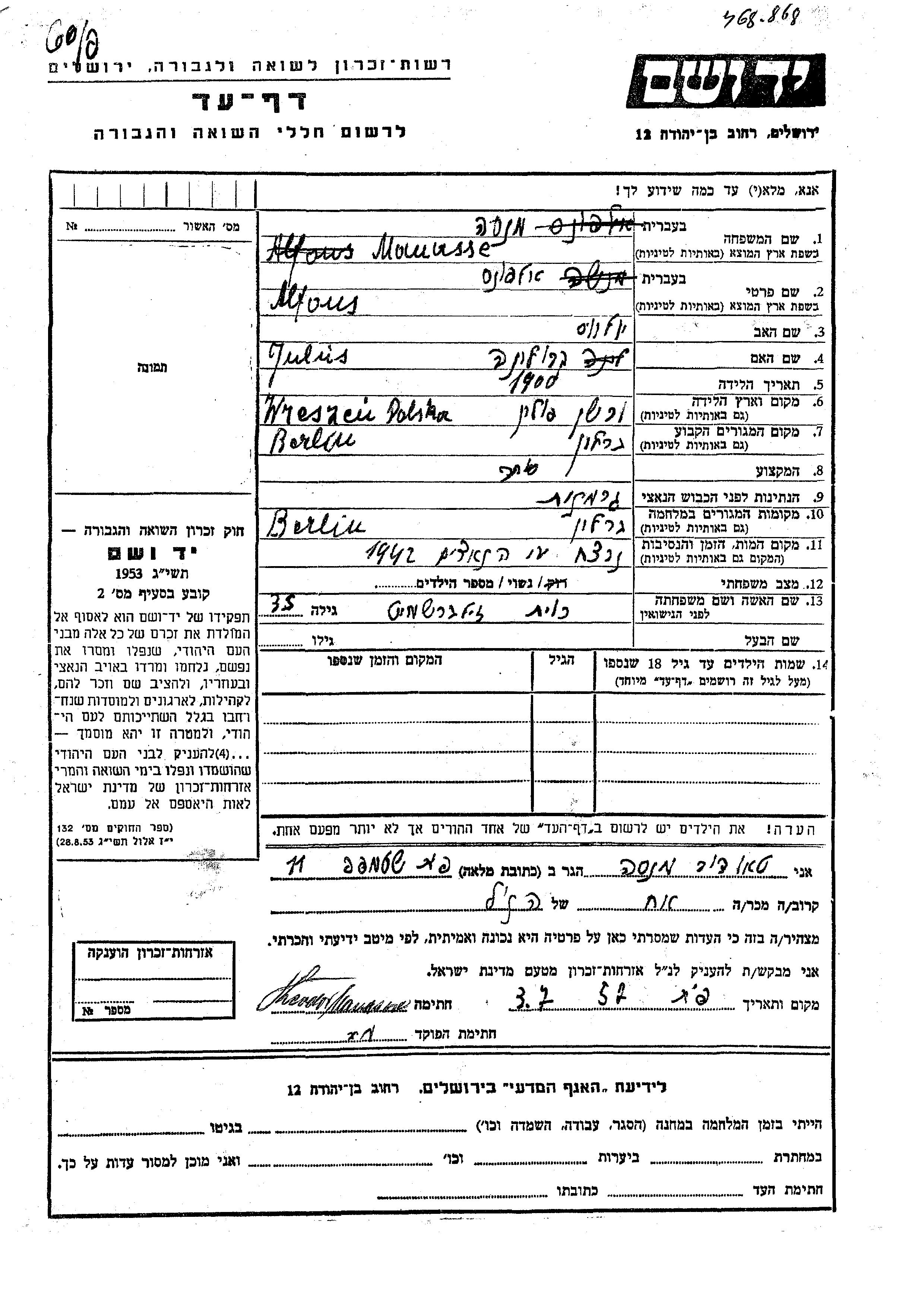 Yad Vashem - Pages of Testimony Names Memorial Collection