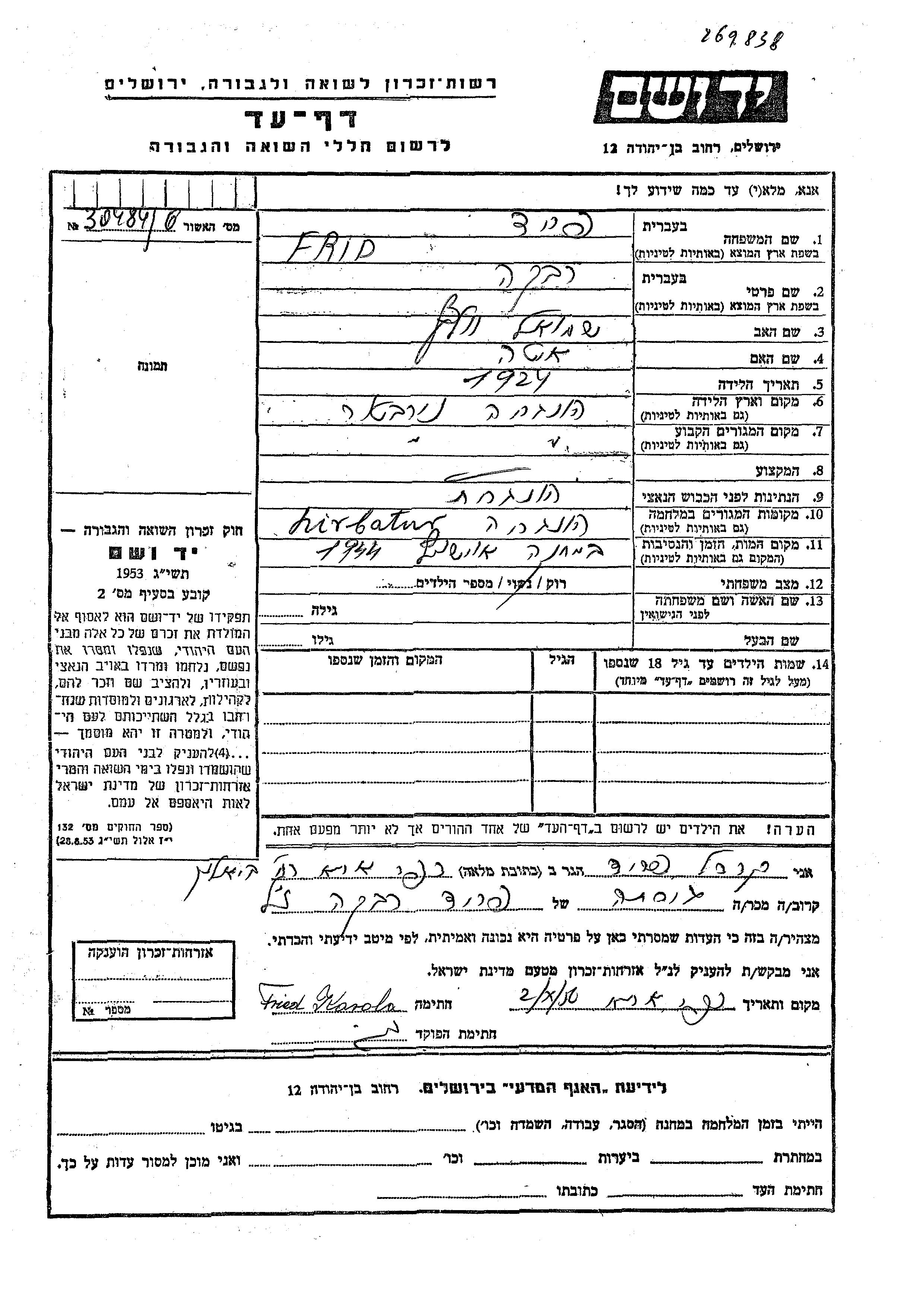 Yad Vashem - Pages of Testimony Names Memorial Collection
